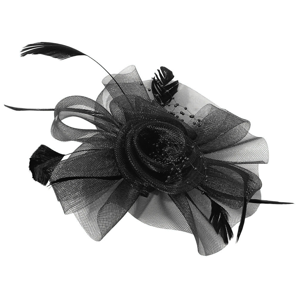 Feather & Mesh Flower Hair Pinch Clip / Brooch
