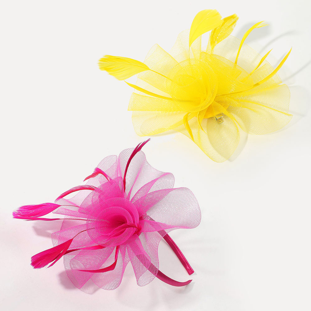 Details • Size : 7" X 7" • Dual : Hair Pinch Clip / Headband • Delicate fascinator with feather accents and layered mesh design, perfect for weddings, cocktail parties, races, and formal gatherings. This lightweight hair accessory adds a touch of charm and sophistication, making it an ideal statement piece for special occasions.