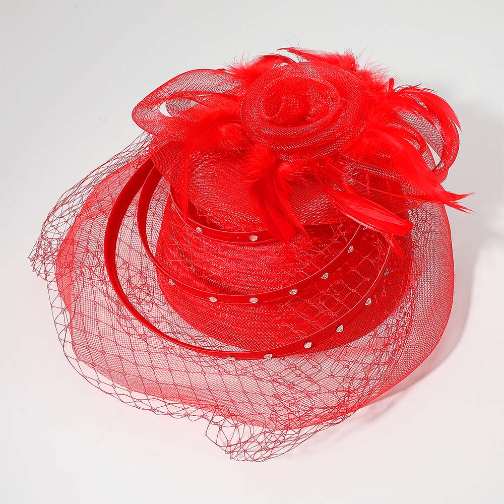 Mesh Flower Feather Pointed Fascinator / Dressy Hat
