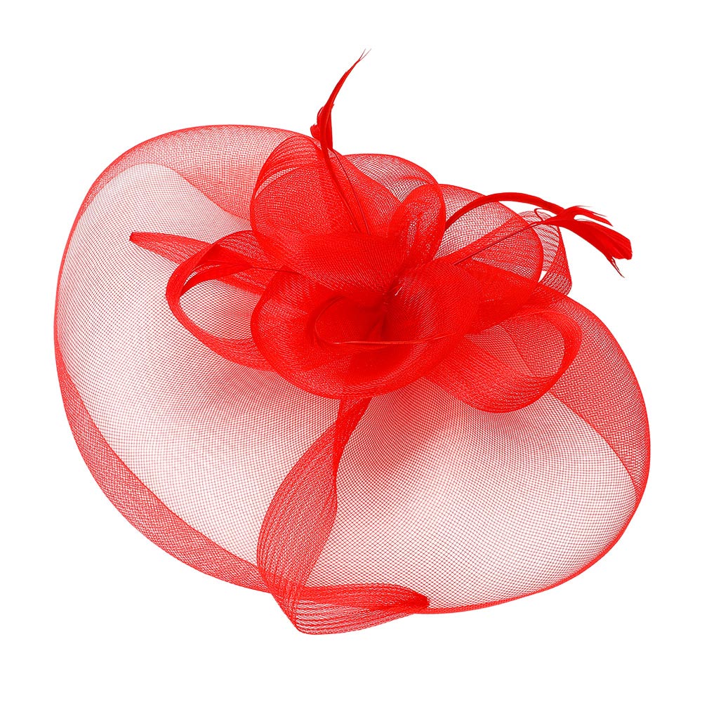 Flower Ribbon Feather Accented Sinamay Dressy Hat