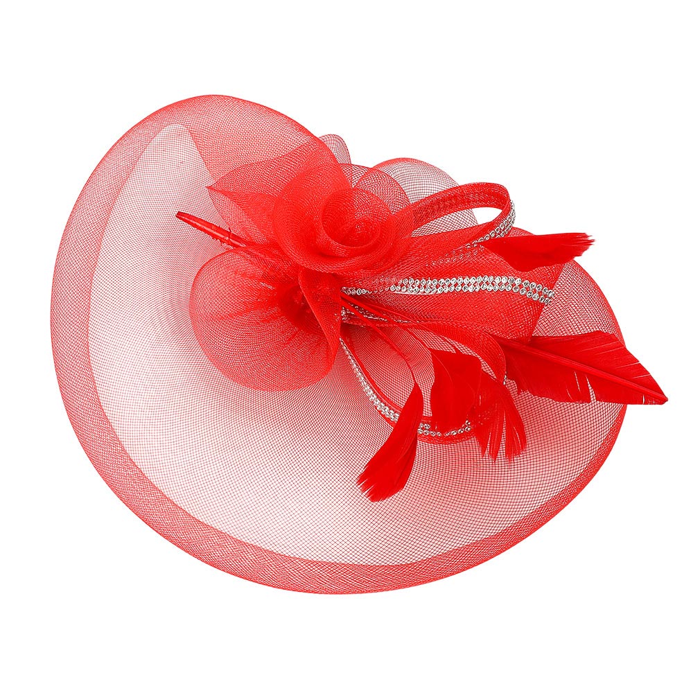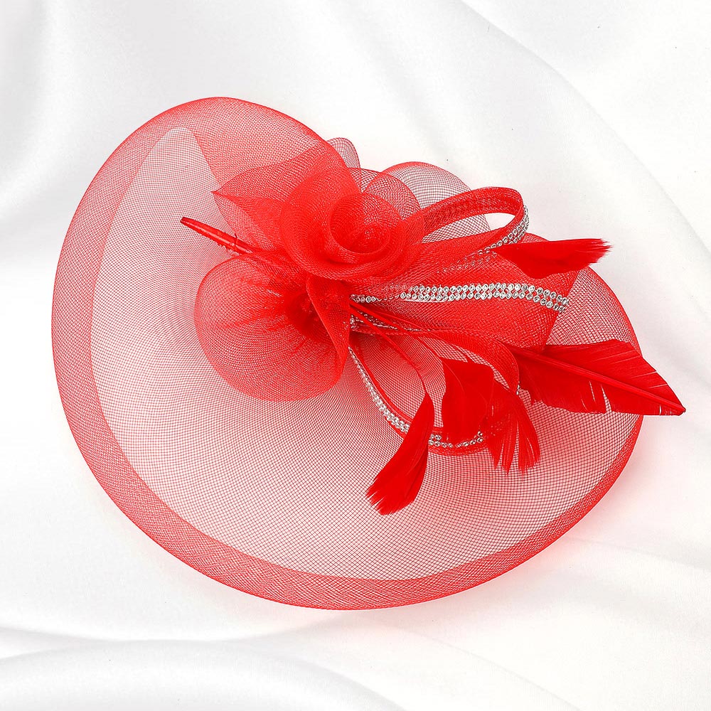 Details • Size : 12" x 11" • Dual : Hair Pinch Clip / Headband • Elegant fascinator hat featuring a delicate mesh flower, feather accents, and sleek design. Perfect for weddings, cocktail parties, horse races, and special occasions, adding charm and sophistication to any outfit.