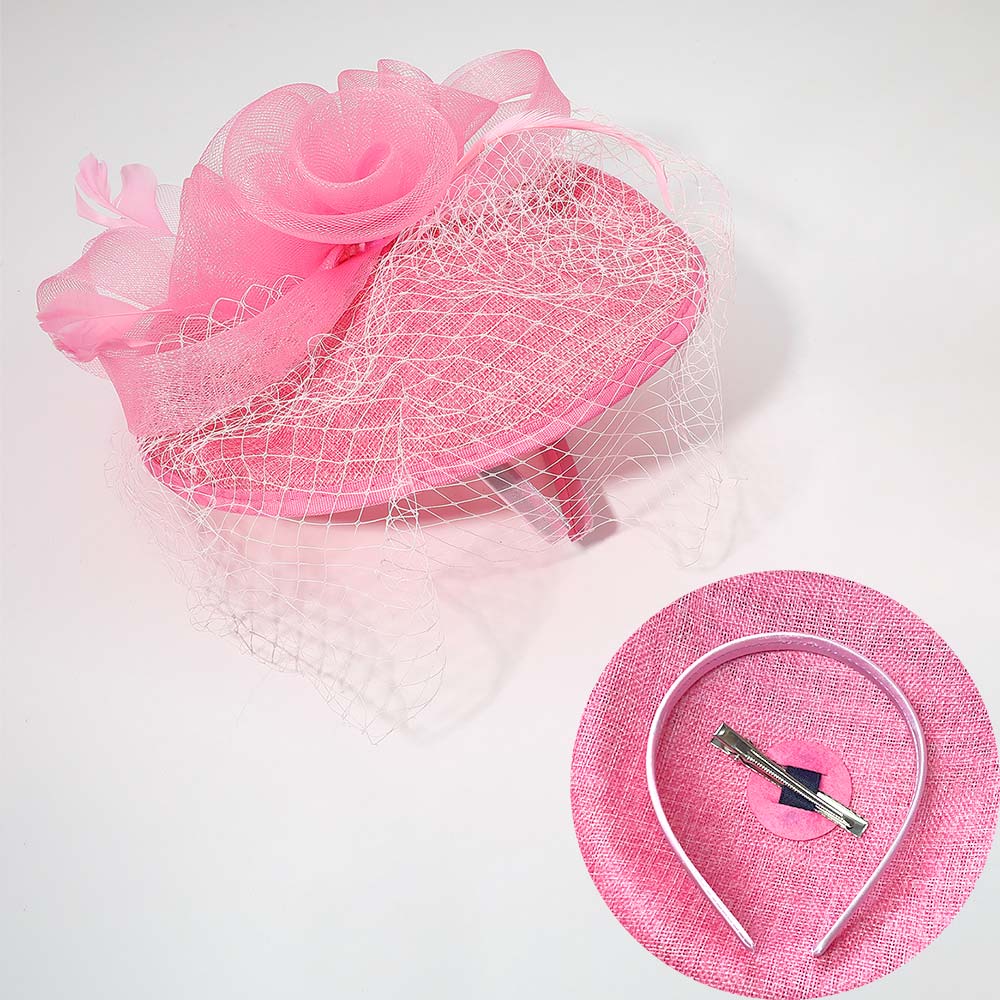 Feather & Mesh Flower Hair Pinch Clip / Brooch