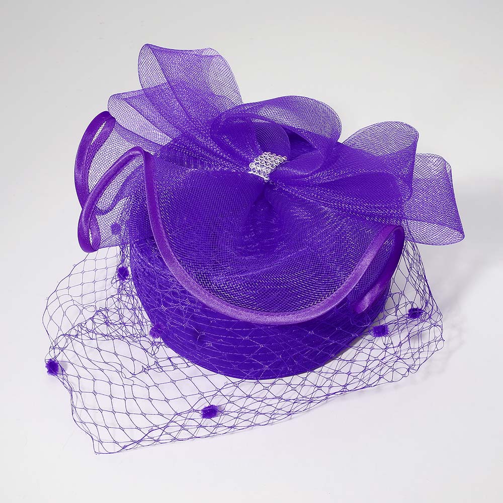 Stone Paved Mesh Bow Pointed Fascinator / Dressy Hat
