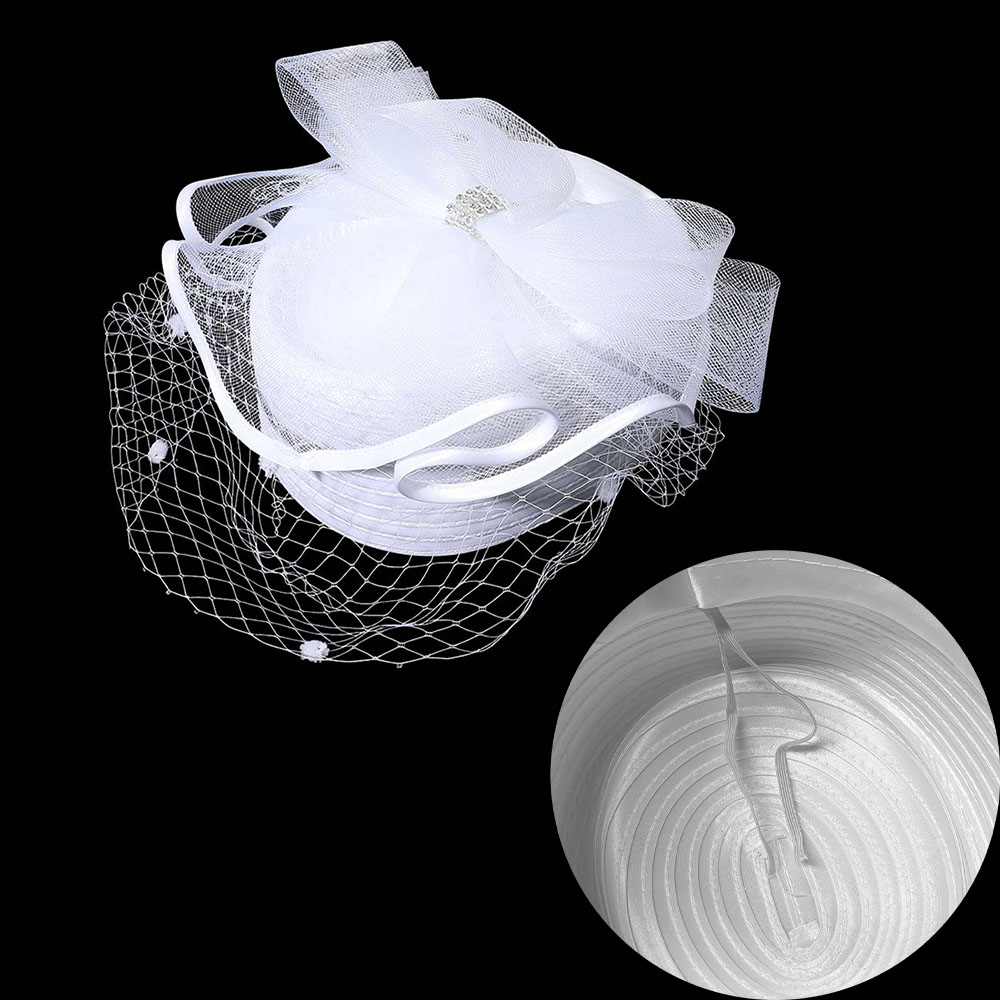 Stone Paved Mesh Bow Pointed Fascinator / Dressy Hat