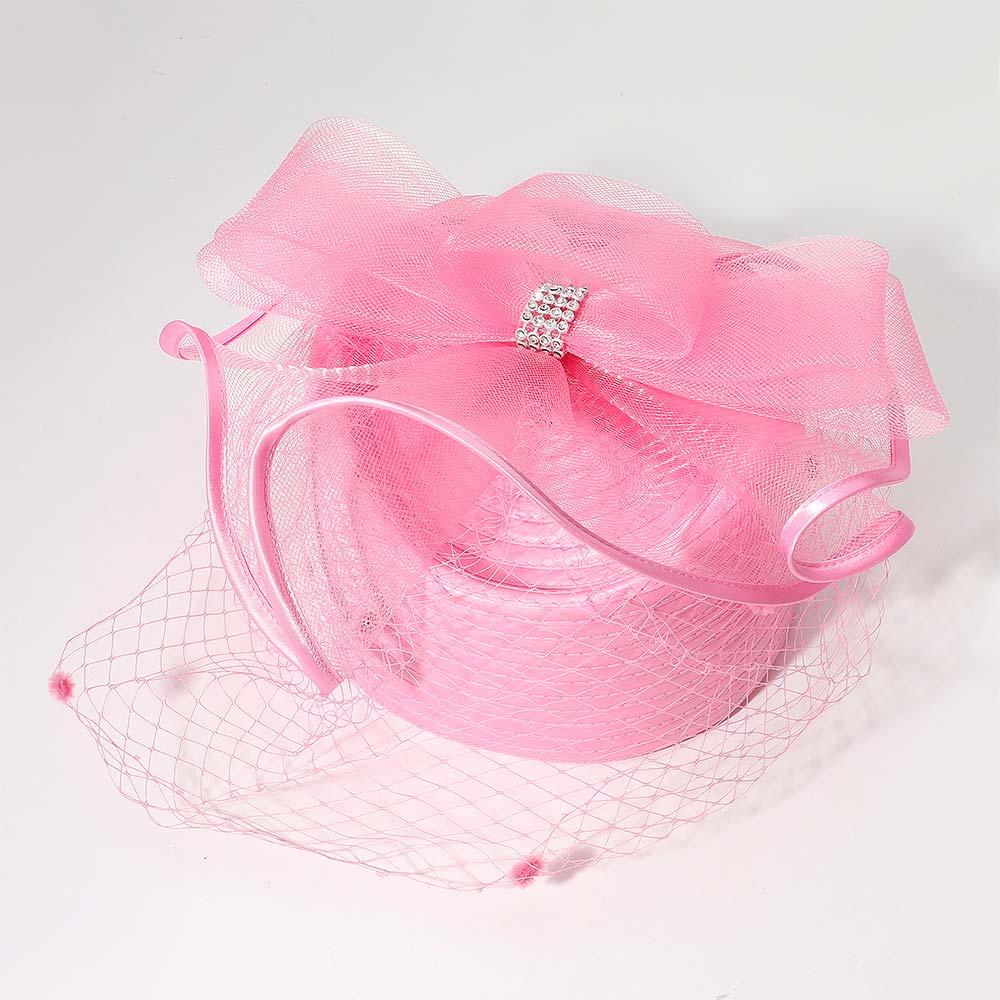 Rhinestone Bow Accent Elegant Dressy Hat