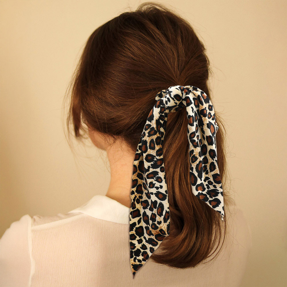 • Elevate your everyday hairstyle with this trendy leopard print ponytail hair scarf. Lightweight and stylish, it adds a fashionable and chic flair to any casual or dressy look.