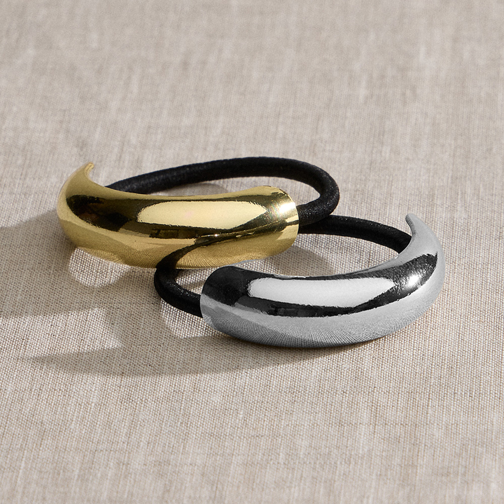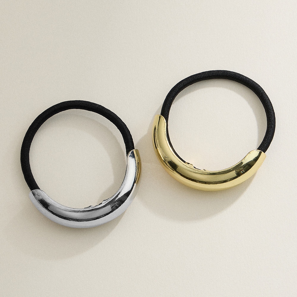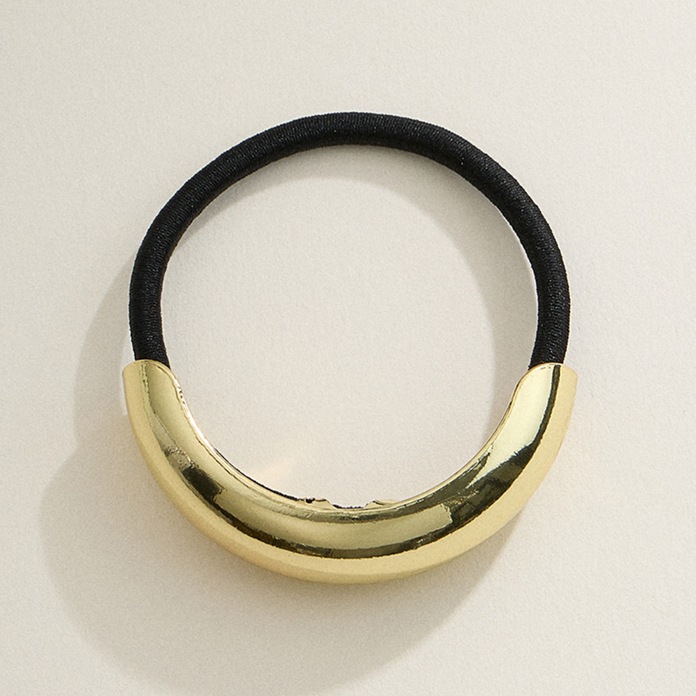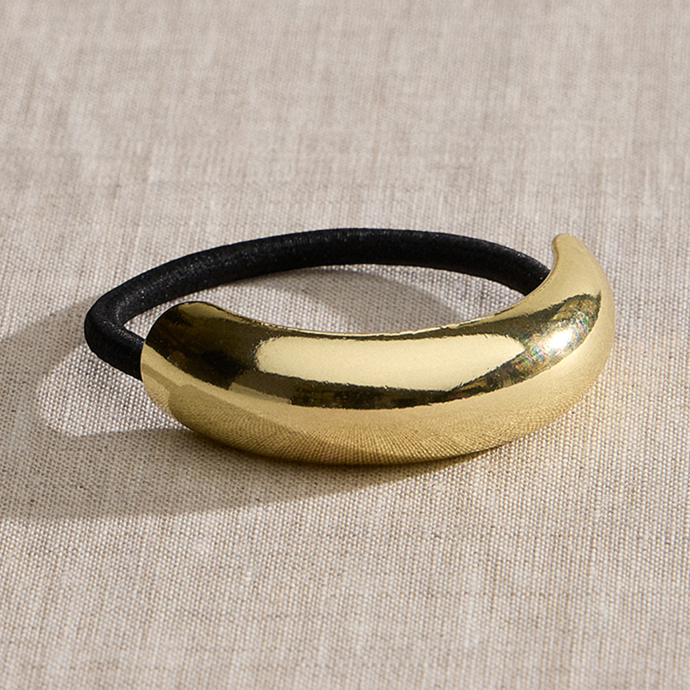 Details • Size : 2" X 0.8" • Stretchable • Add sophistication to your hairstyle with this sleek metallic hair band featuring a polished curved accent. Designed for both style and function, it secures ponytails with ease while doubling as a chic accessory, perfect for elevating everyday looks or completing elegant updos. • Lead and Nickel Compliant