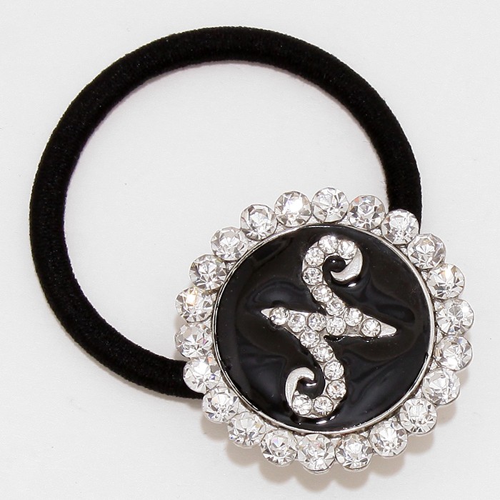 -H- 12PCS - Crystal Accented Initial Monogram Ponytail Hair Bands