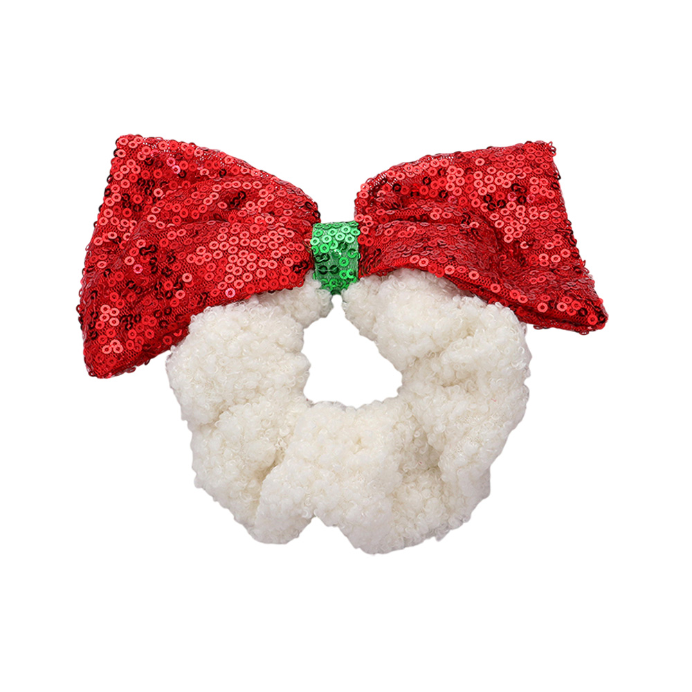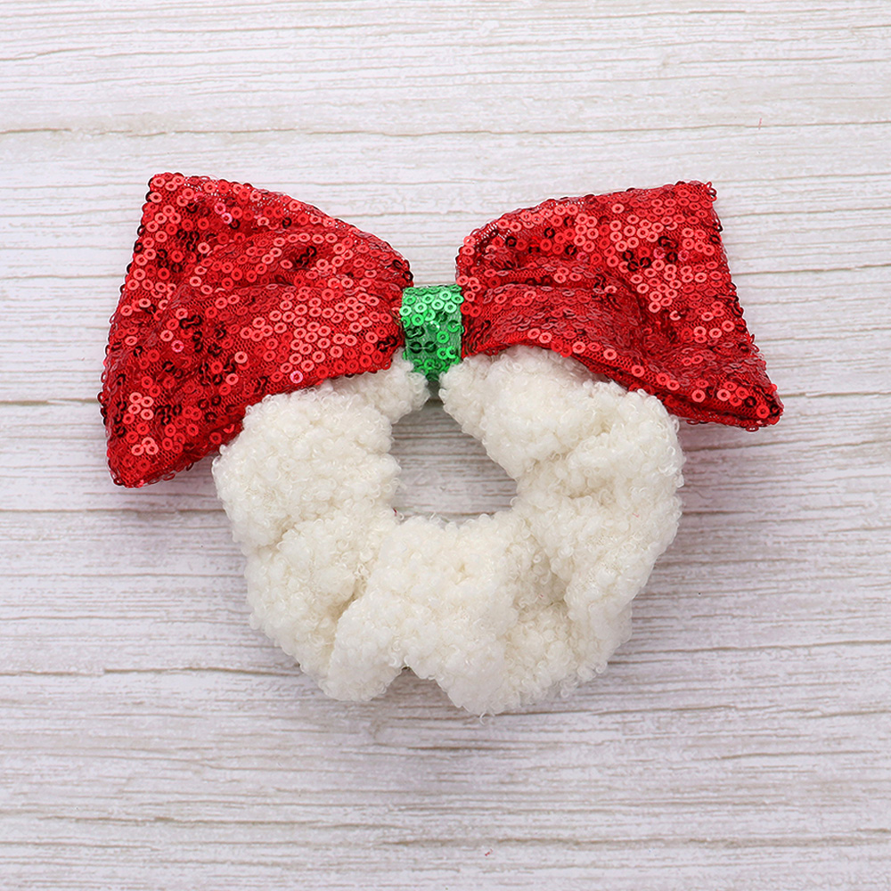 Sequin Christmas Bow Sherpa Scrunchie Hairband