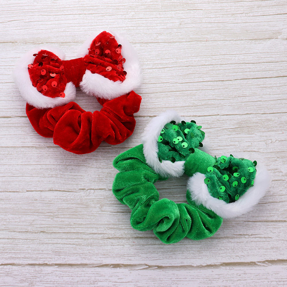 Sequin Fuzzy Christmas Bow Scrunchie Hairband
