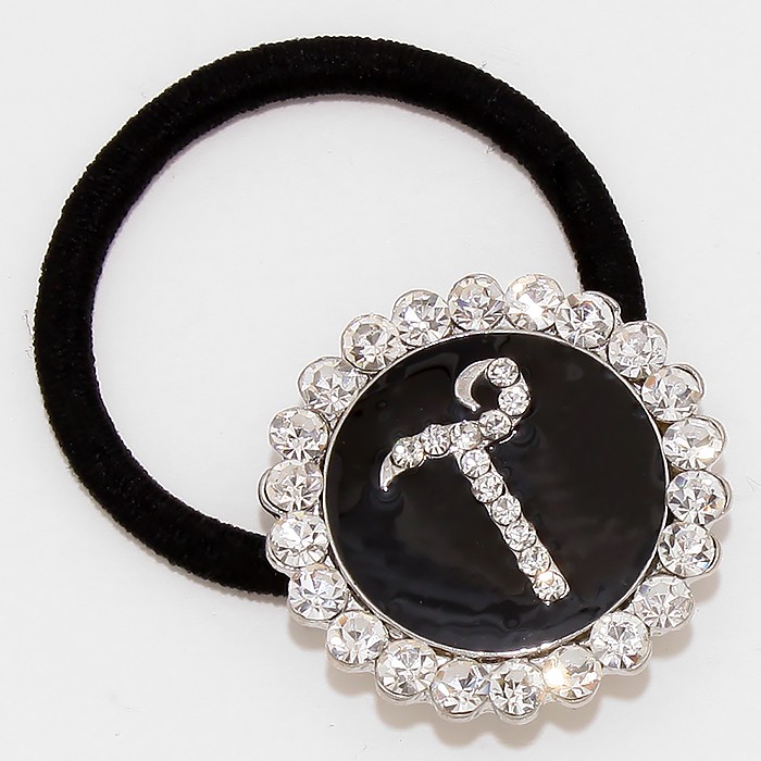 'T' Crystal Accented Initial Monogram Ponytail Hair Band