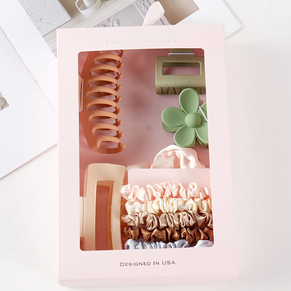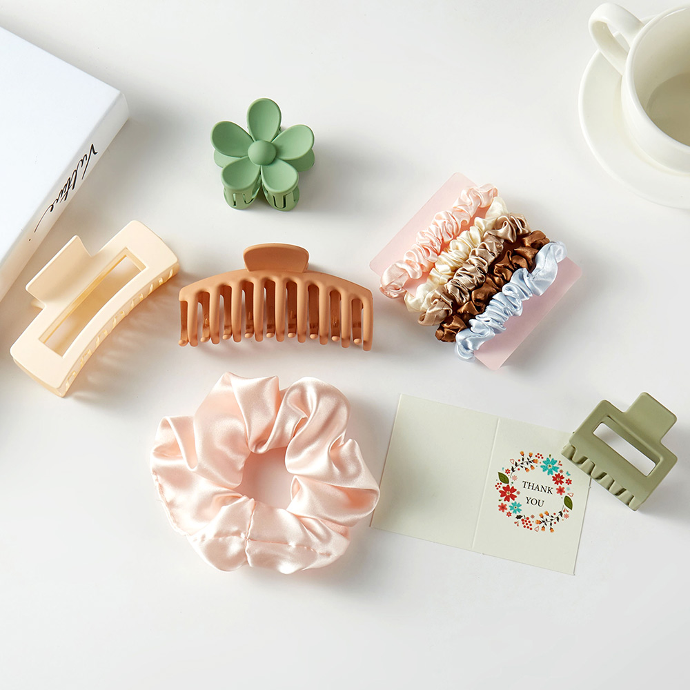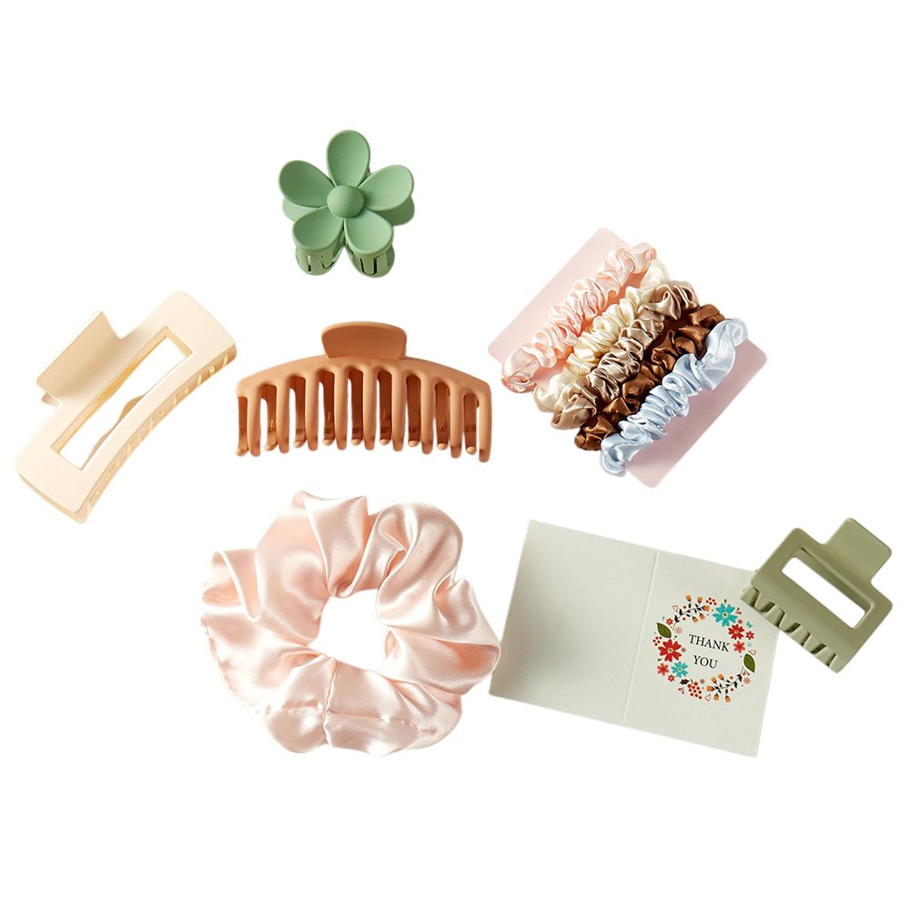 10PCS - Flower Square Hair Claw Clips Stretchable Fabric Hairbands Set