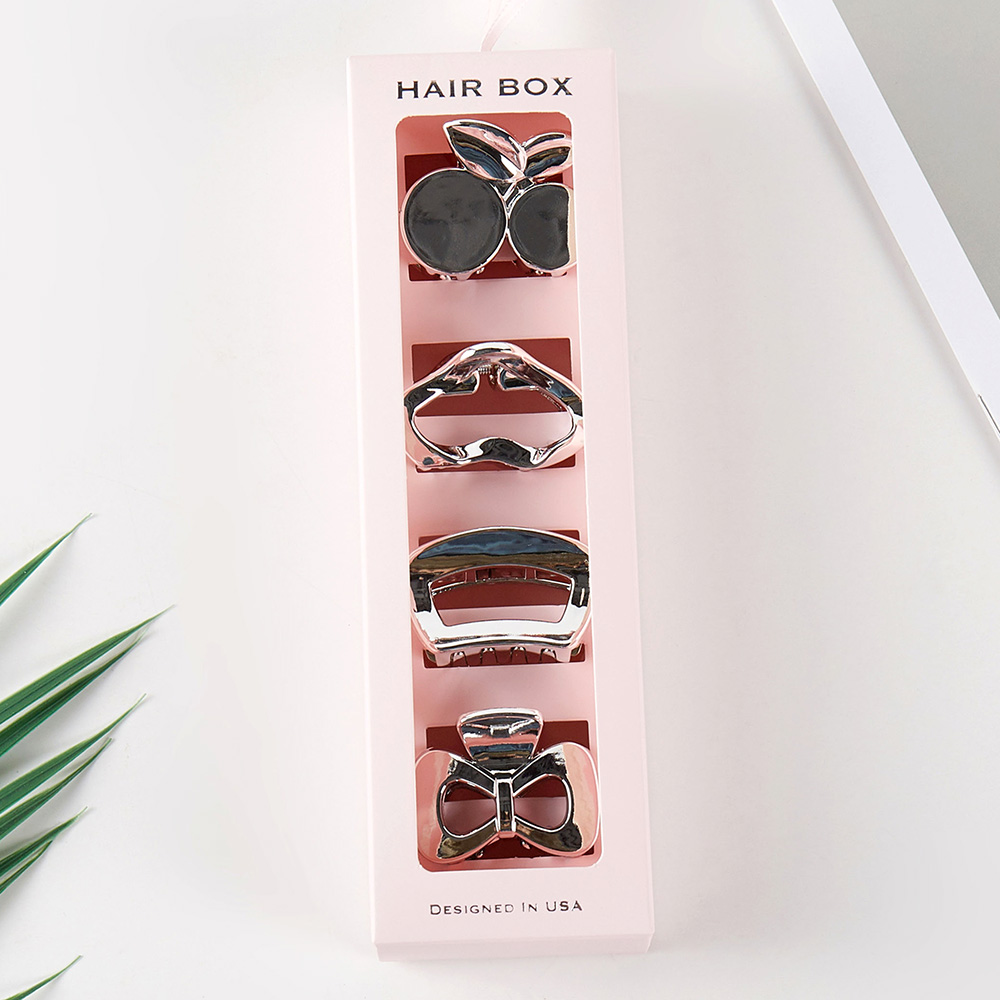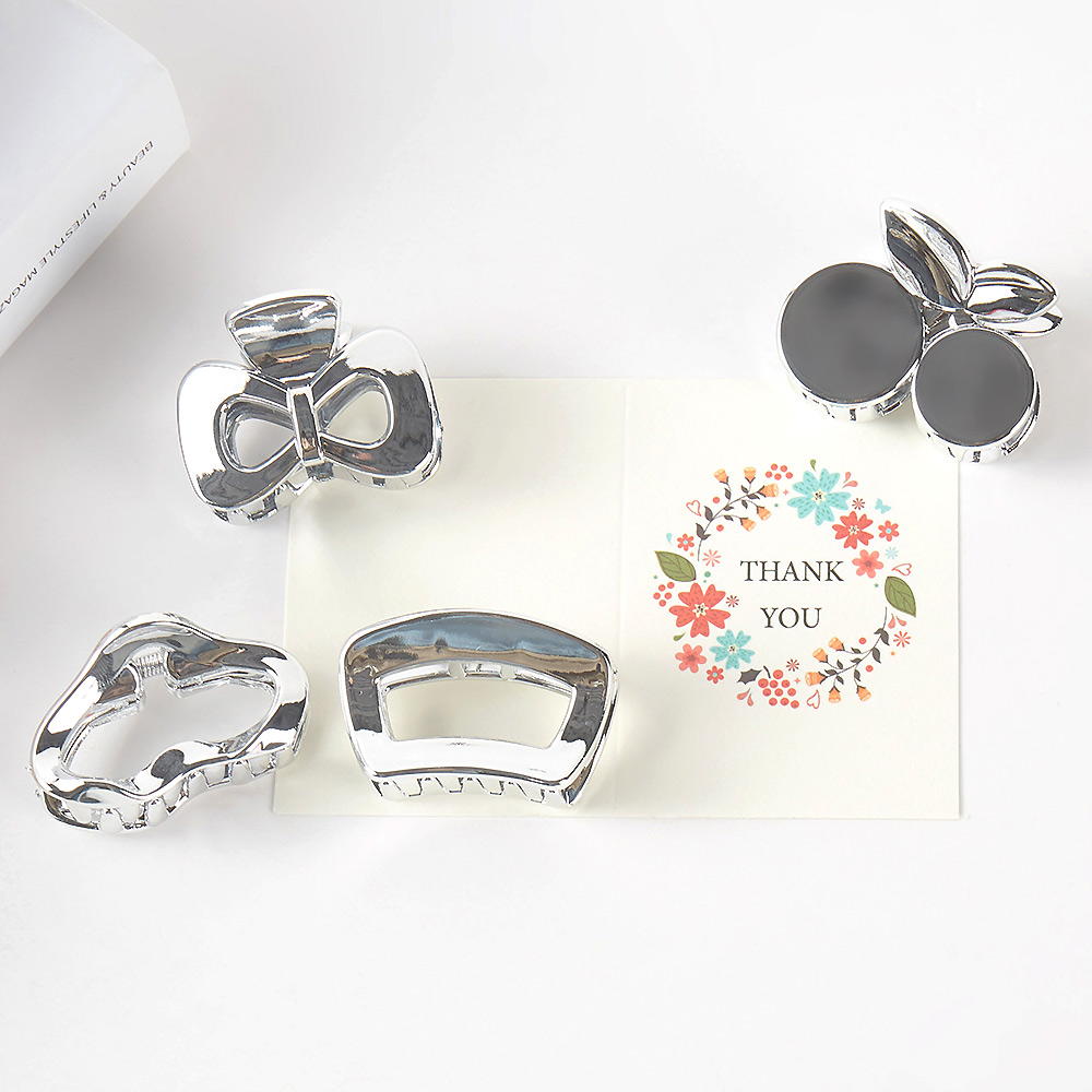 4PCS - Chrome Cherry Bow Cloud Hair Claw Clips