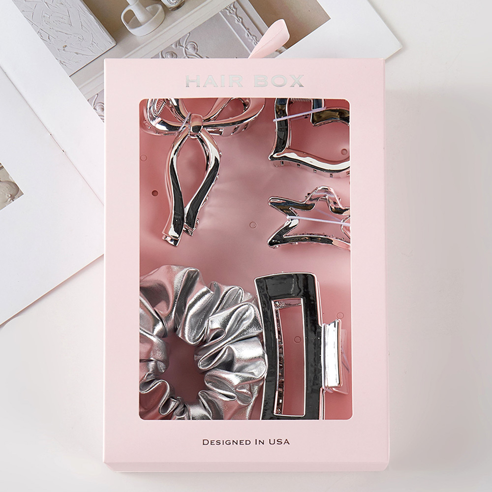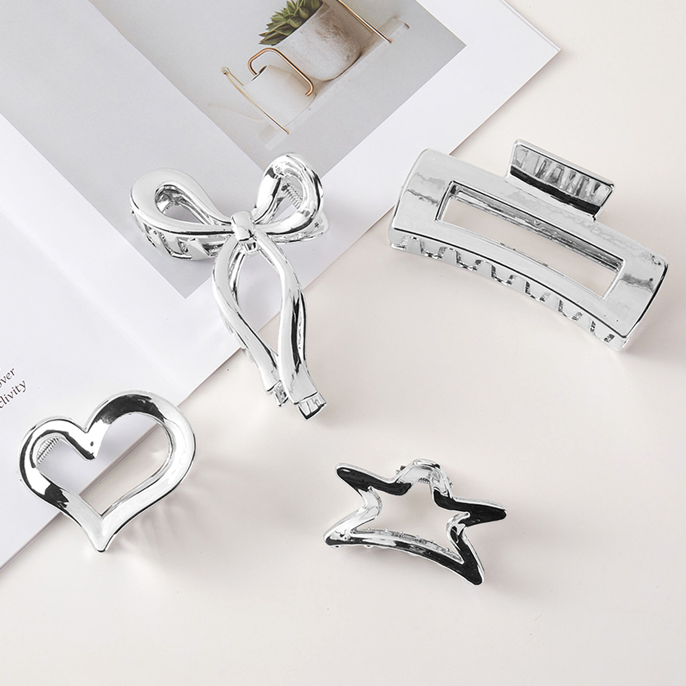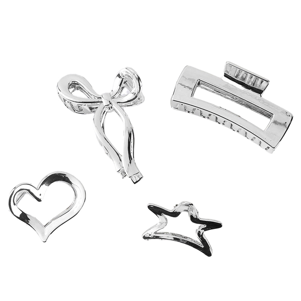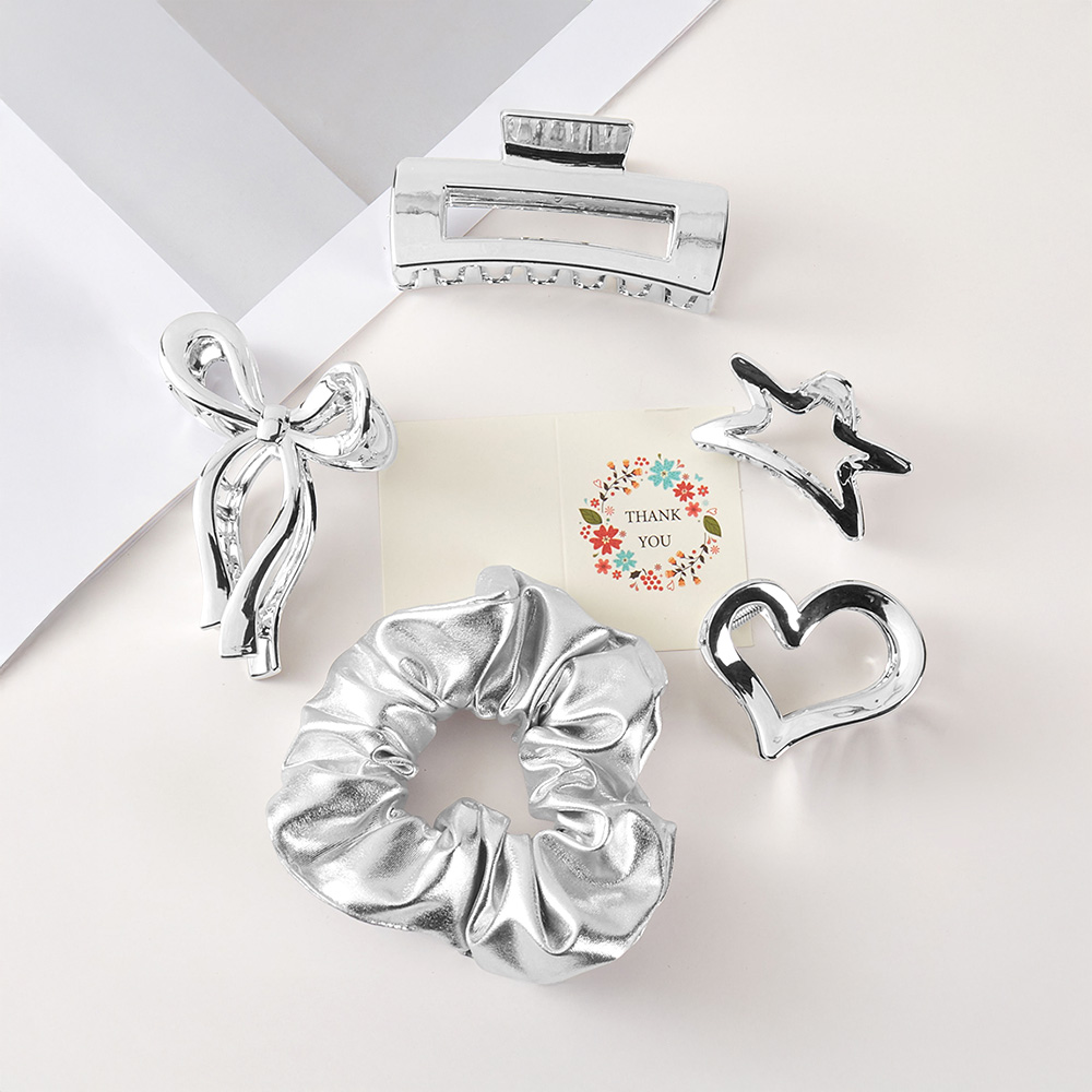 5PCS - Chrome Bow Heart Star Square Open Hair Claw Clips Stretchable Fabric Hairband Set