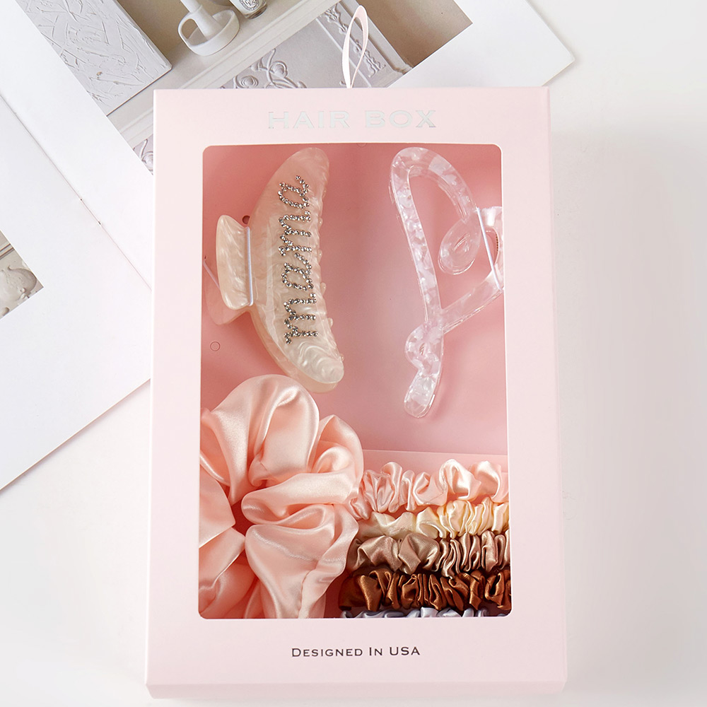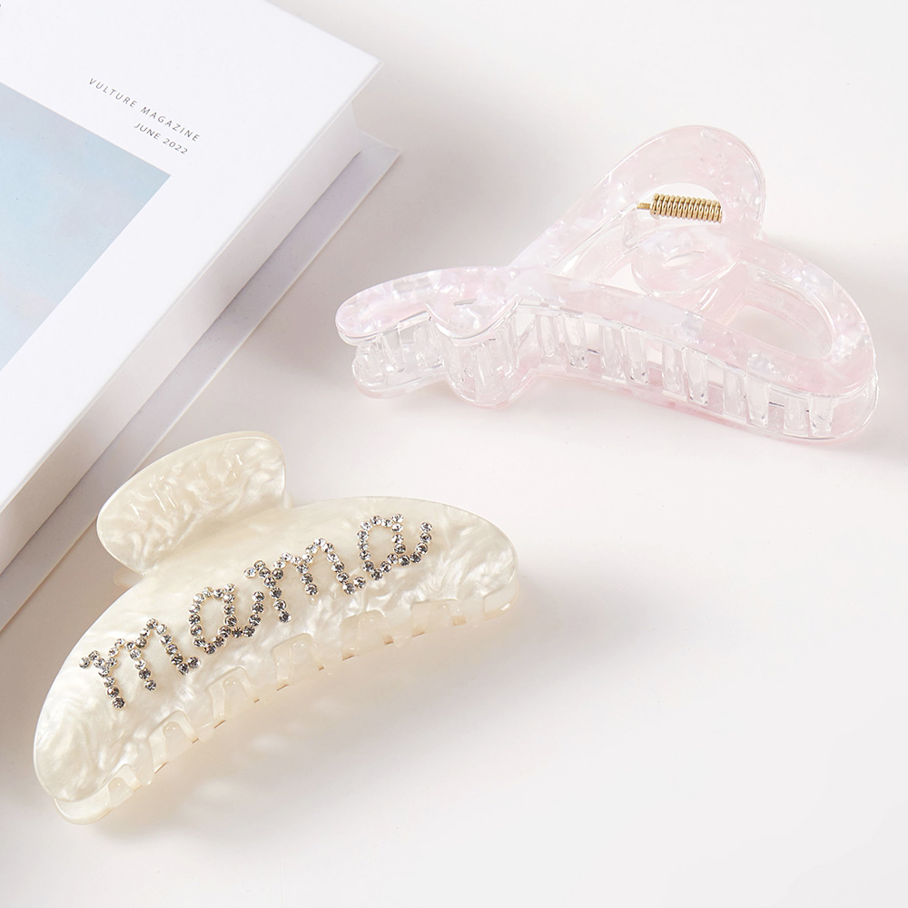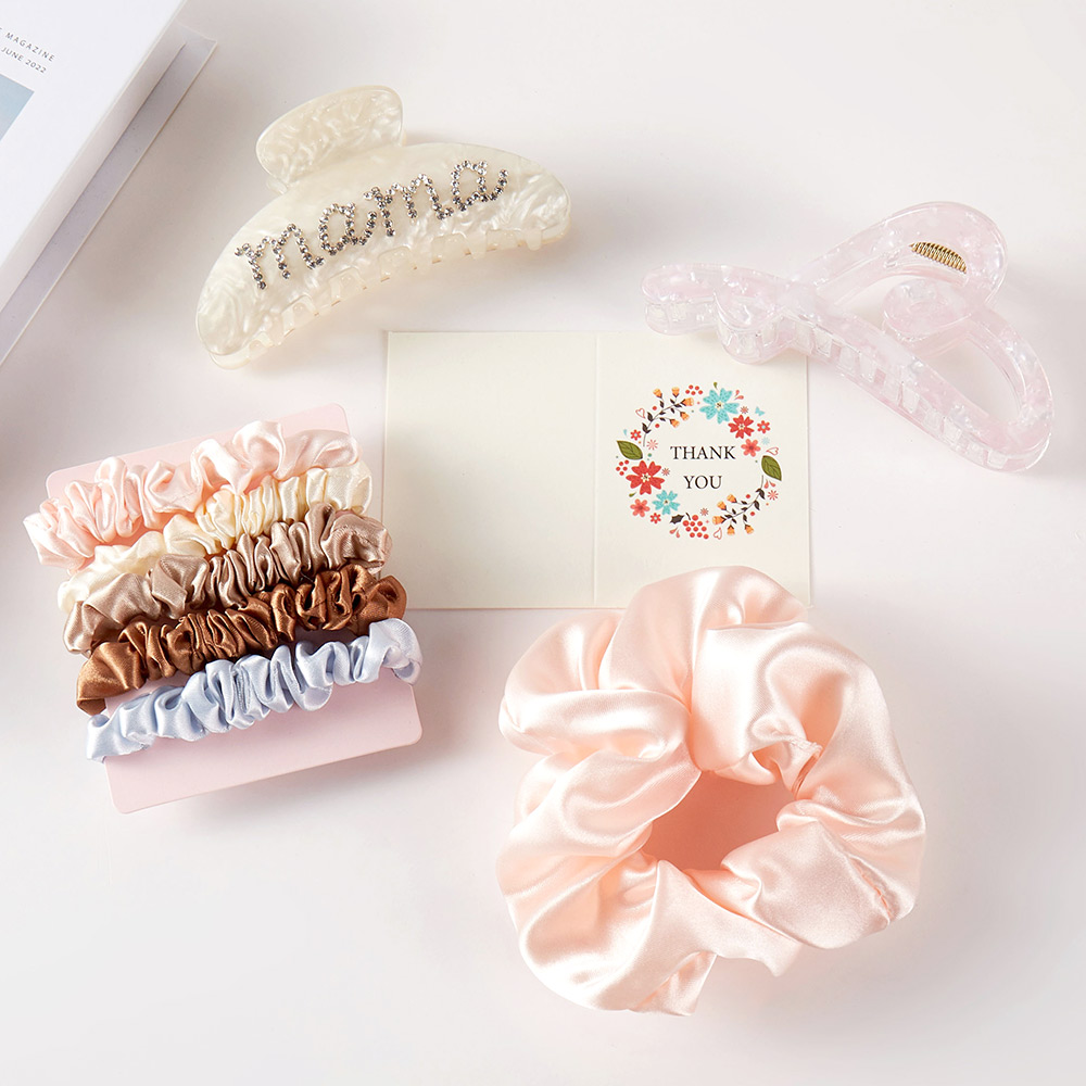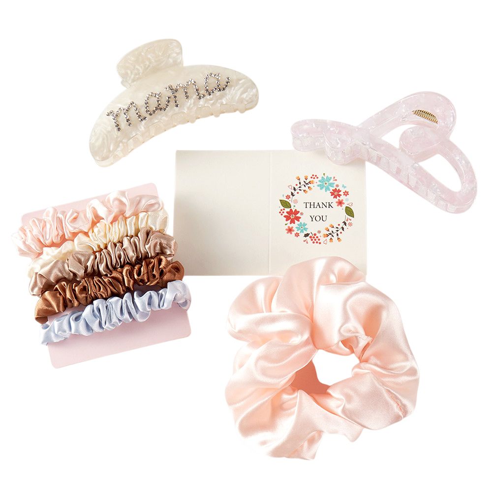 8PCS - Cellulose Acetate MAMA Bling Studded Hair Claw Clips Stretchable Fabric Hairbands Set
