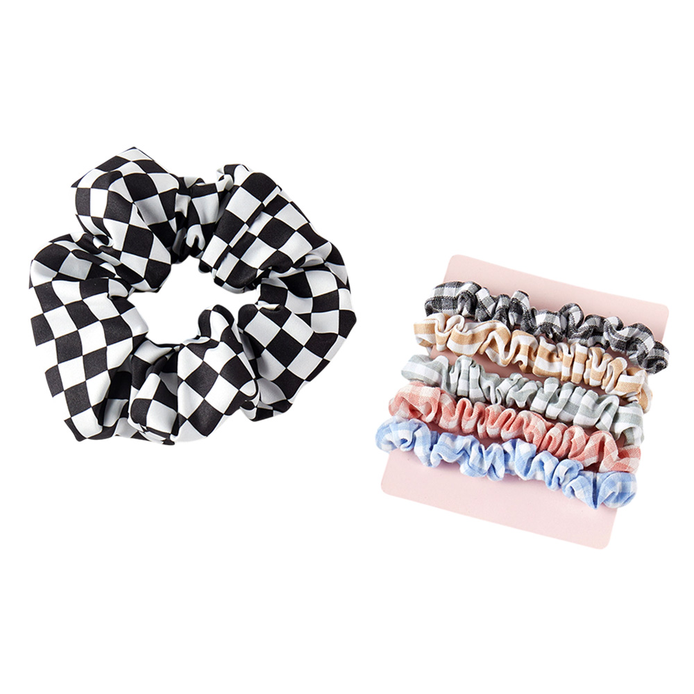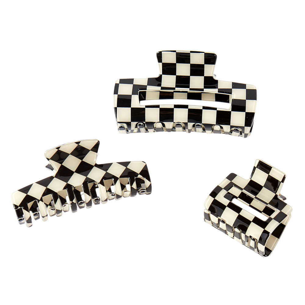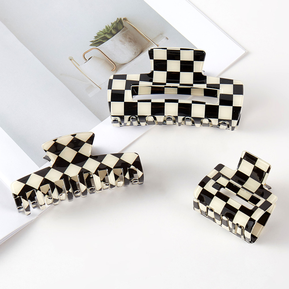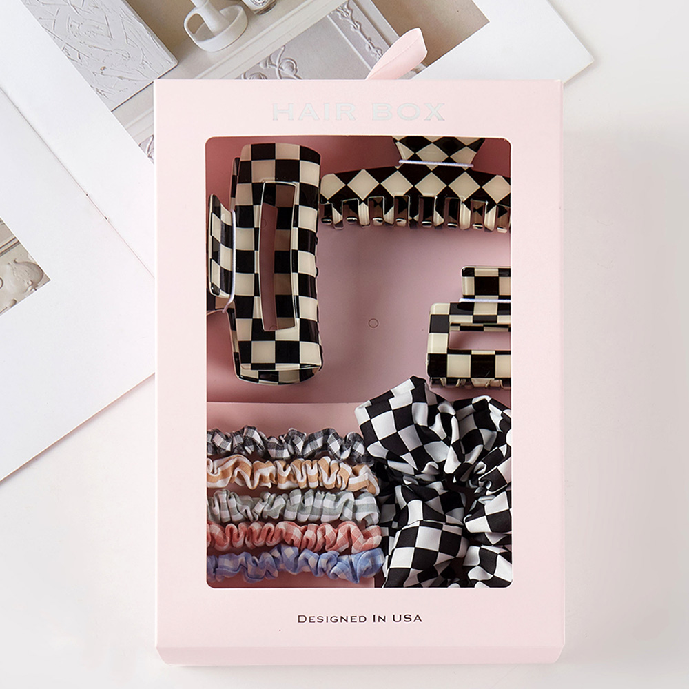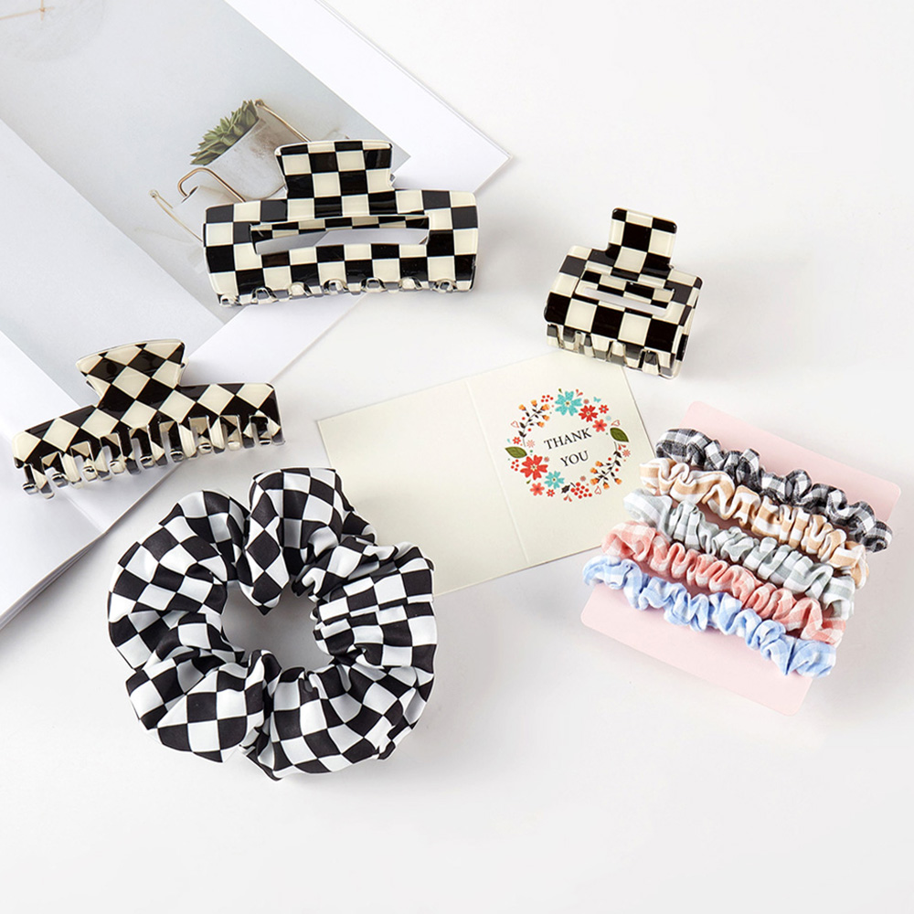 9PCS - Cellulose Acetate Checkered Hair Claw Clips Stretchable Fabric Hairbands Set