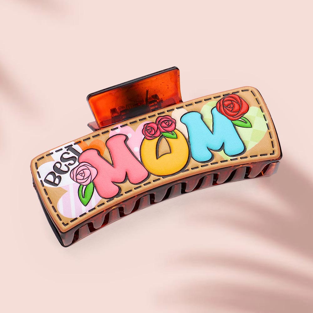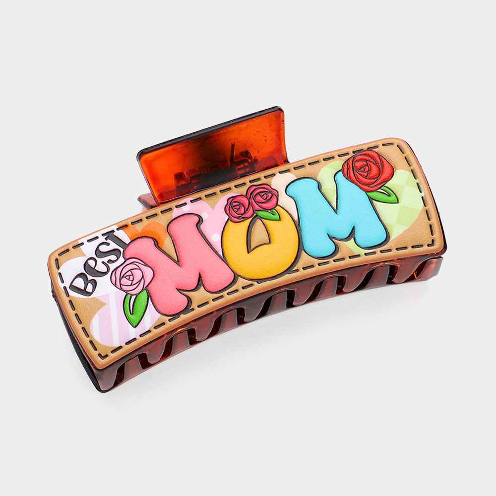 BEST MOM Message Faux Leather Hair Claw Clip