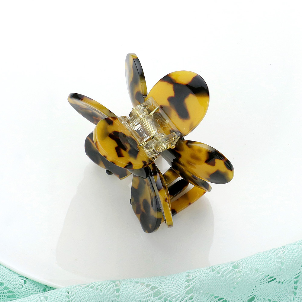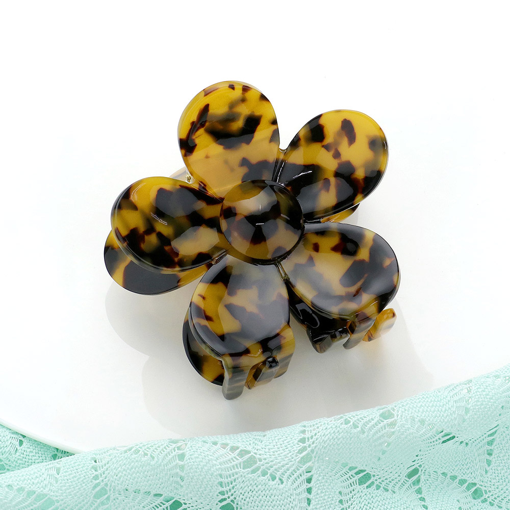 Details • Size : 2.9" X 2.5" • Bring effortless elegance to your look with this floral tortoiseshell hair claw clip. Designed in a blooming flower shape, it secures hair with ease while adding a chic accent. Ideal for quick updos, half-up styles, or as a statement detail for casual and dressy occasions.