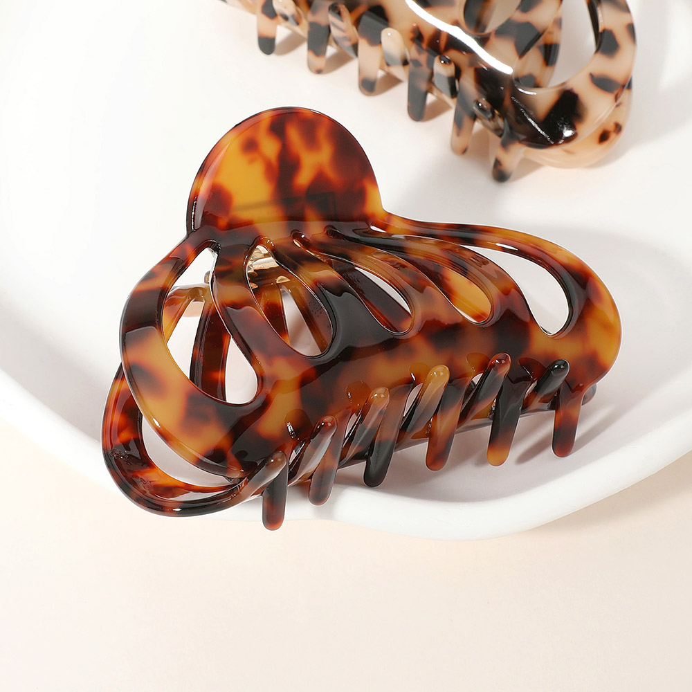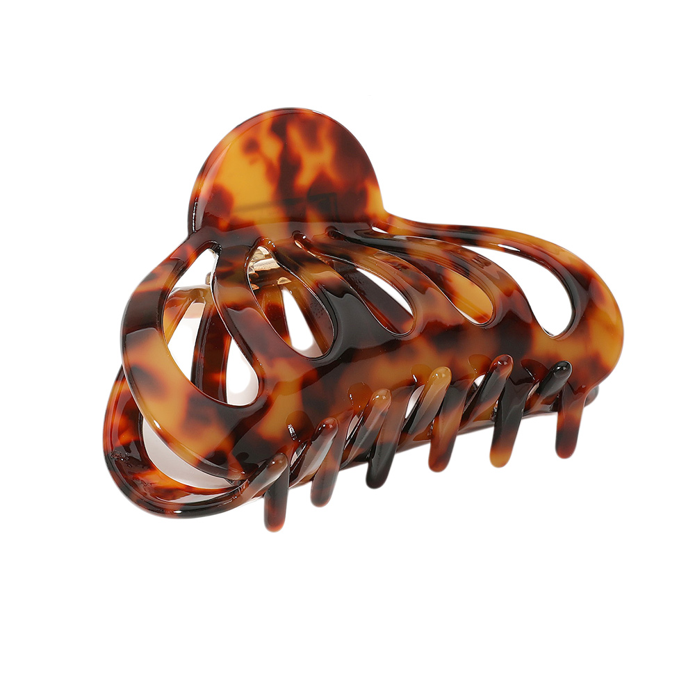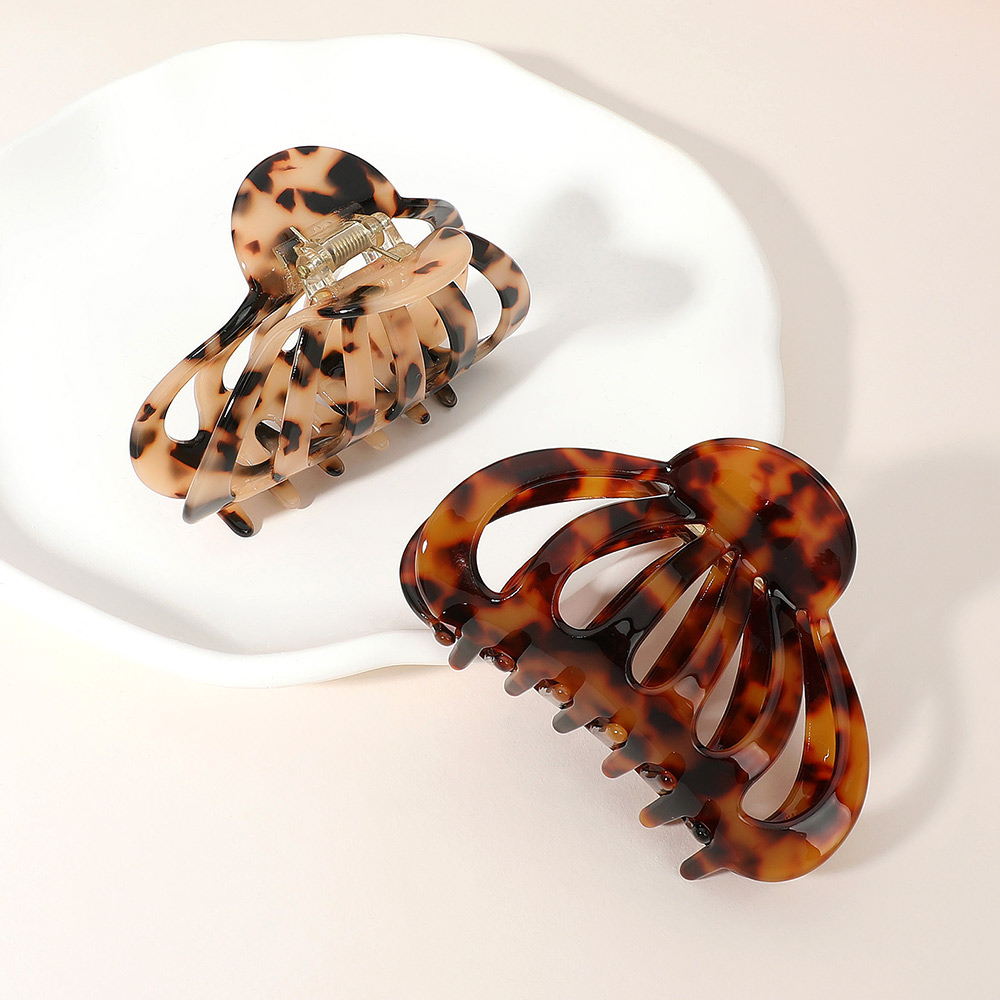 Details • Size : 3.75" X 2.5" • Keep your hair stylishly secure with this tortoiseshell pattern hair claw clip. Designed with a strong grip and lightweight feel, it’s perfect for quick updos or half-up styles. The elegant curved design adds a modern, chic touch to everyday or special occasion looks.