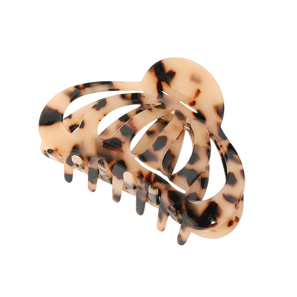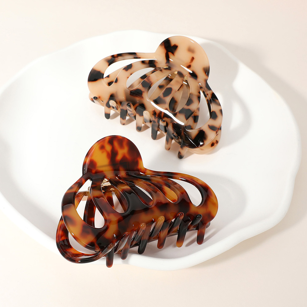 Details • Size : 3.75" X 2.5" • Keep your hair stylishly secure with this tortoiseshell pattern hair claw clip. Designed with a strong grip and lightweight feel, it’s perfect for quick updos or half-up styles. The elegant curved design adds a modern, chic touch to everyday or special occasion looks.