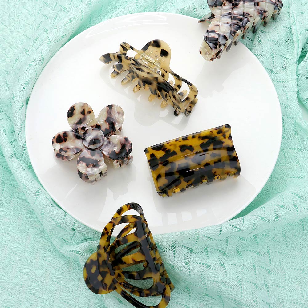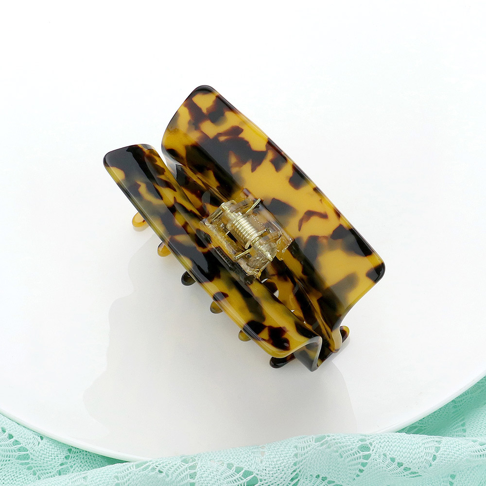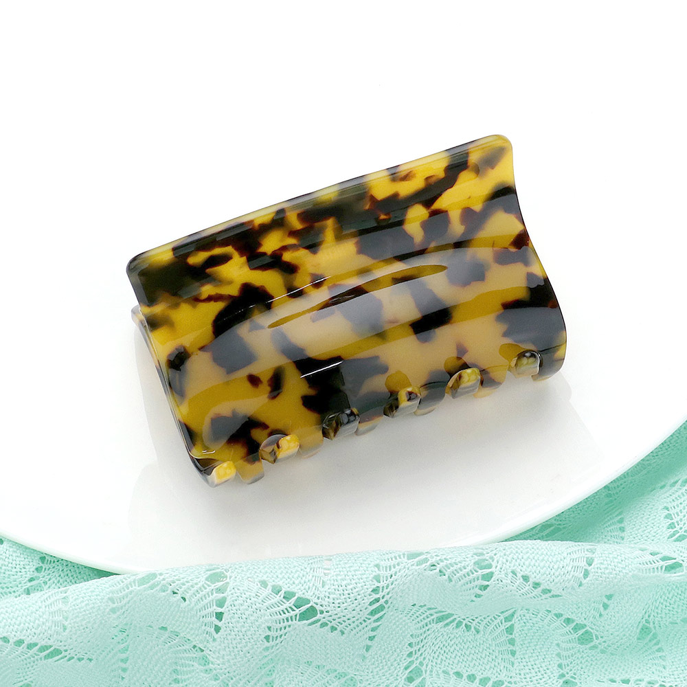 Details • Size : 3.2" X 2" • Elevate your everyday hairstyle with this rectangular tortoiseshell hair claw clip. Its sturdy grip ensures secure hold while the timeless pattern adds a touch of chic. Perfect for quick updos, half-up styles, or as a versatile accent for casual and polished looks.