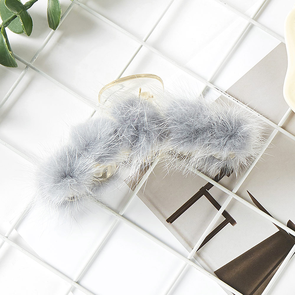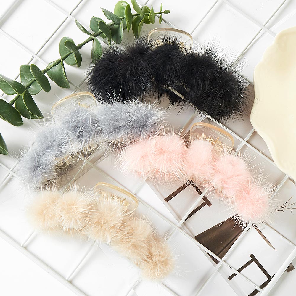 Faux Fur Pom Pom Hair Claw Clip