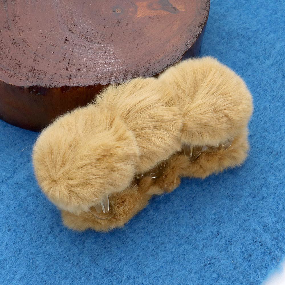 Faux Fur Triple Pom Pom Hair Claw Clip