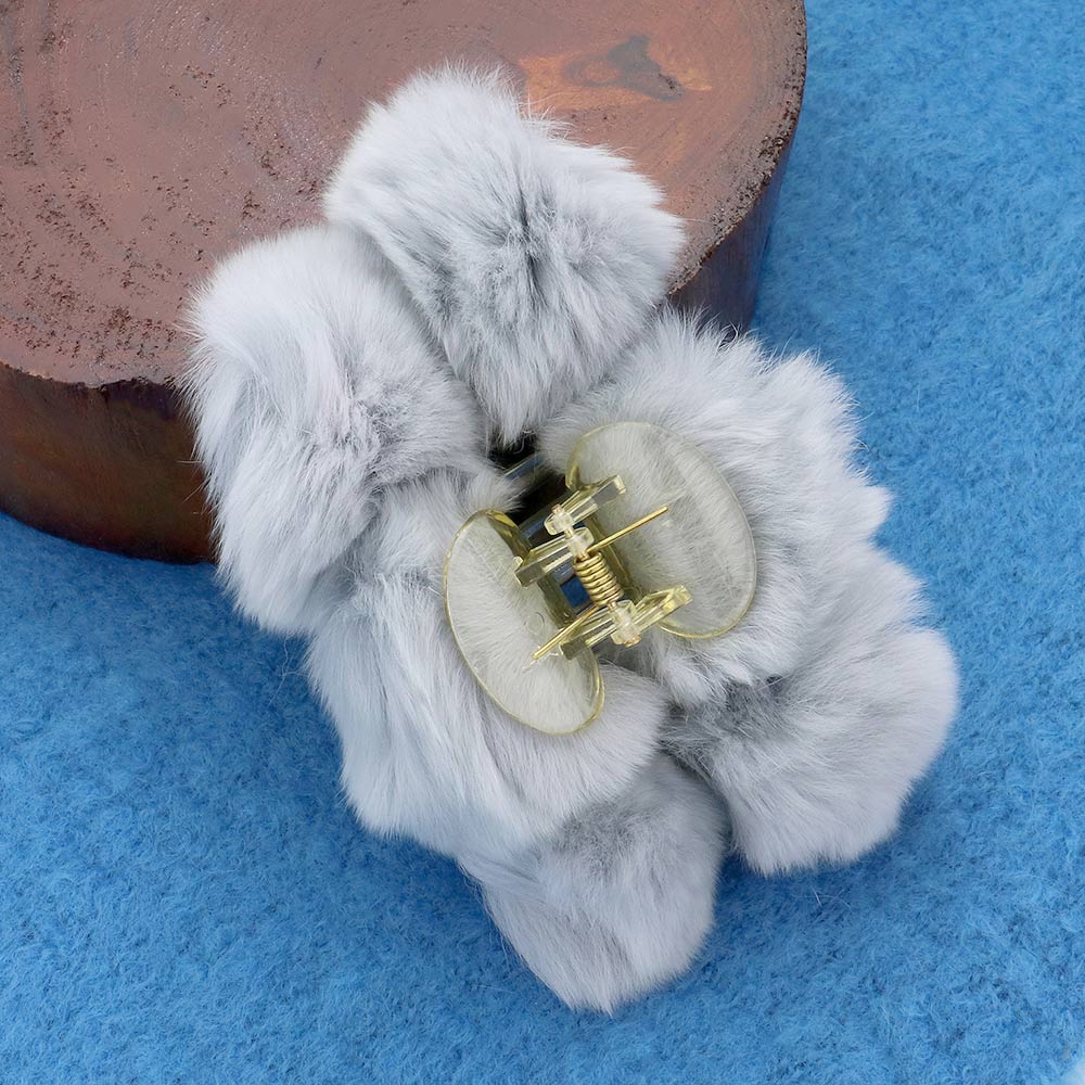 Faux Fur Triple Pom Pom Hair Claw Clip
