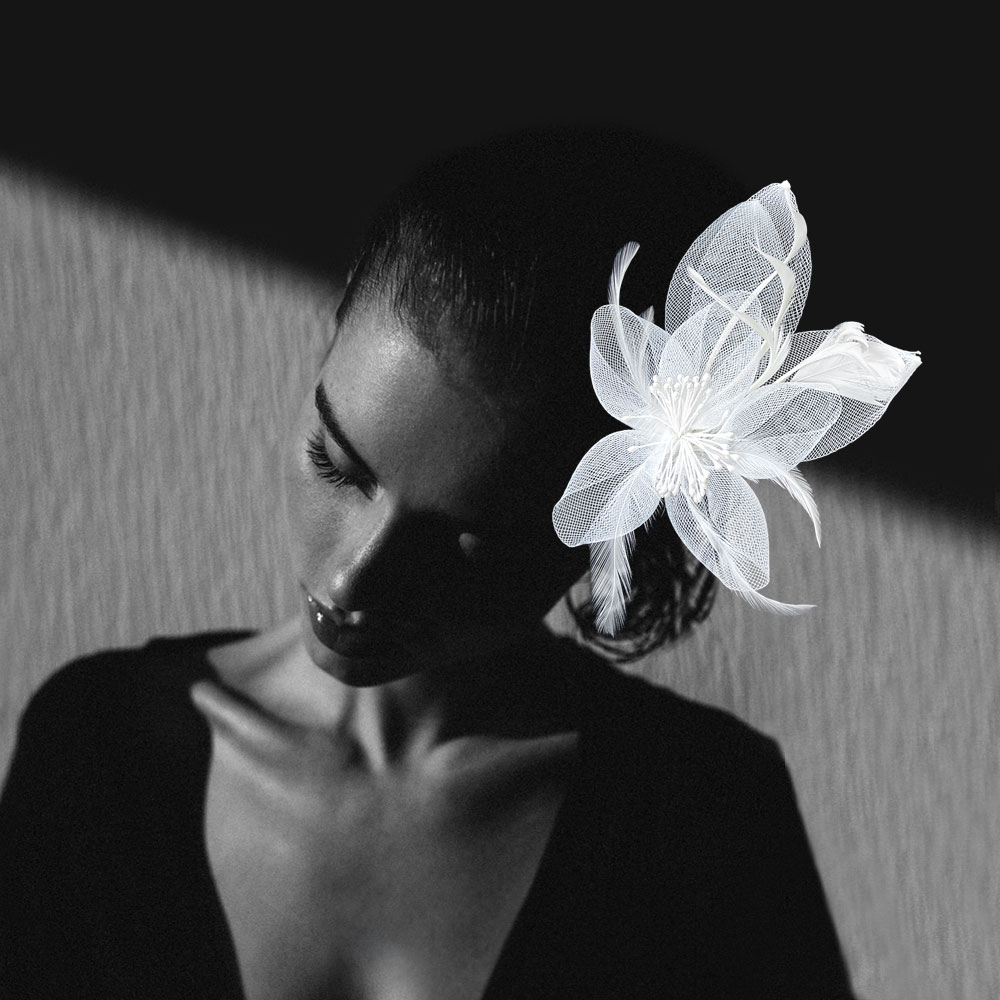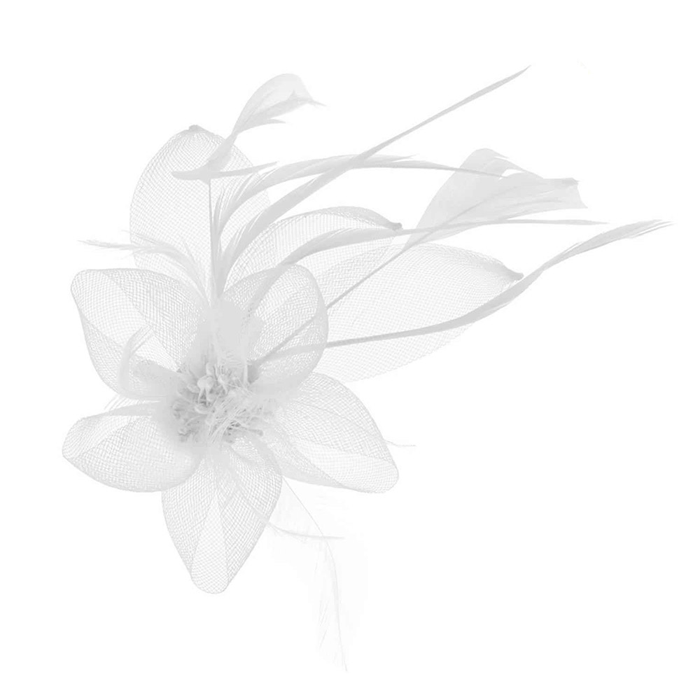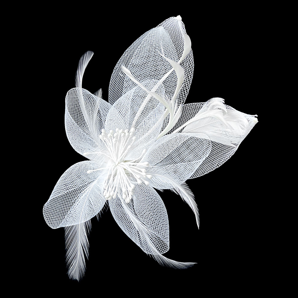 Feather & Mesh Flower Hair Pinch Clip / Brooch