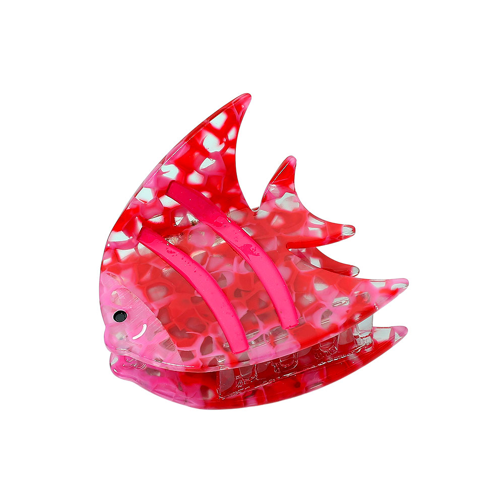 Details • Size : 2.25" X 2" • Add a fun ocean-inspired accent to your look with this fish shape hair claw clip featuring a bold patterned design. Lightweight yet sturdy, it provides a secure grip while giving your hairstyle a playful and stylish touch.