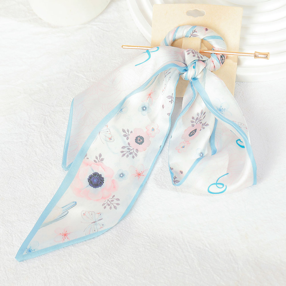 Flower Patterned Silky Scarf Hair Stick / Hair Pin