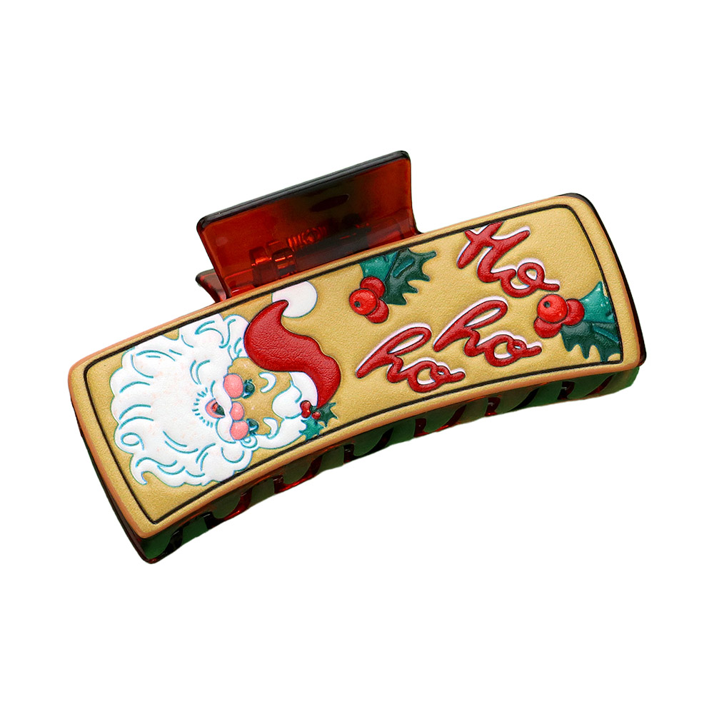 Fuax Leather Embossed Christmas HoHoHo Santa Hair Claw Clip
