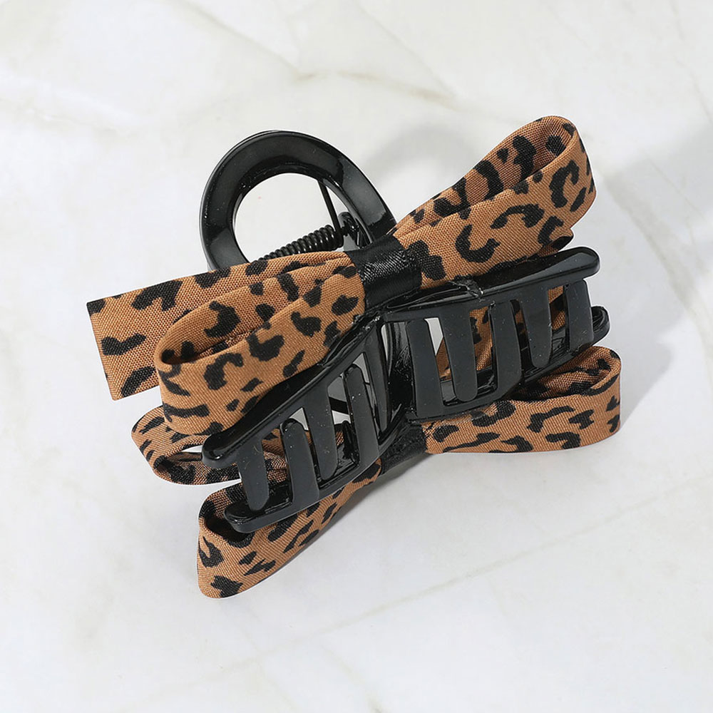 Details • Size : 4" X 2.25" • Add wild charm to your hair with this leopard print hair claw clip featuring a playful bow design. Ideal for casual and trendy hairstyles that need a bold touch.