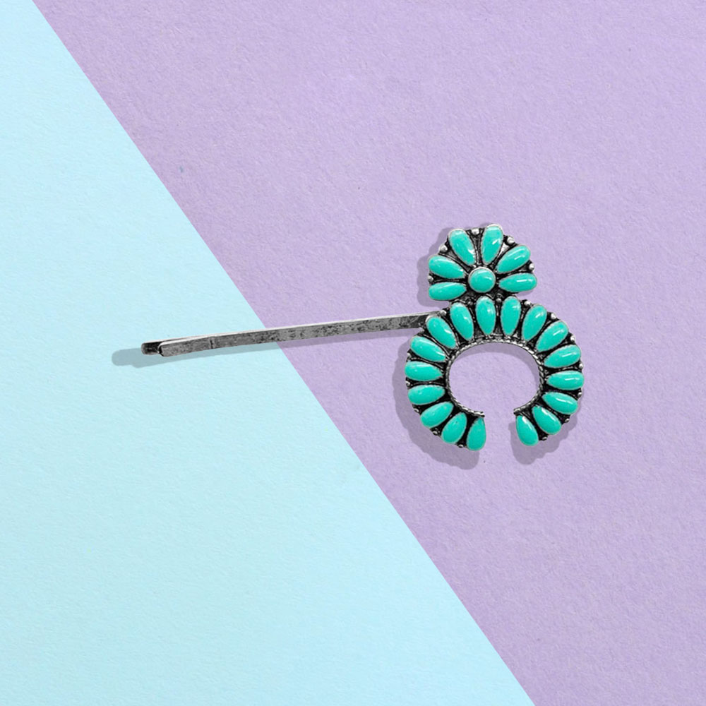 Bohemian Western Turquoise Stone Embellished Horseshoe Pendant Necklace