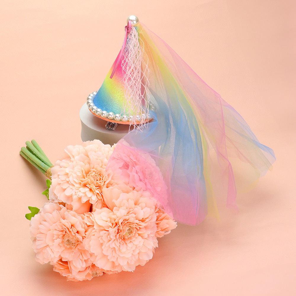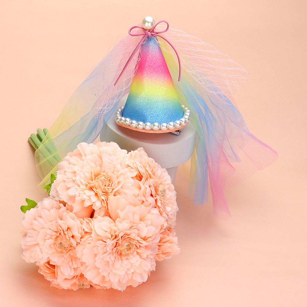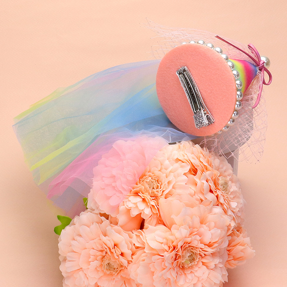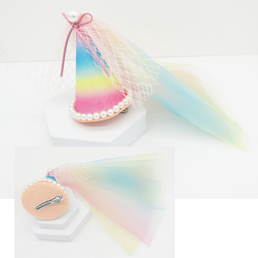Pearl Bow Pointed Ombre Tulle Birthday Hat Hair Clip