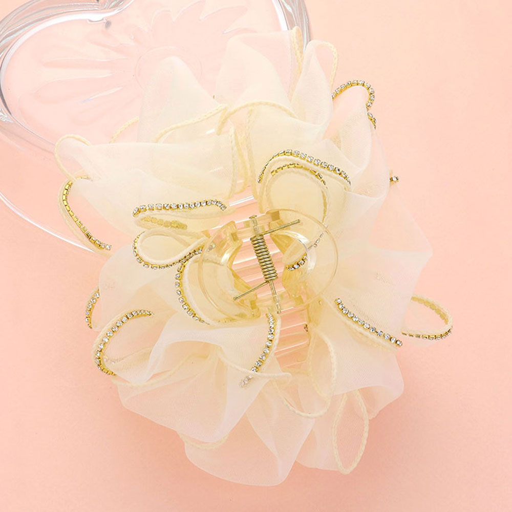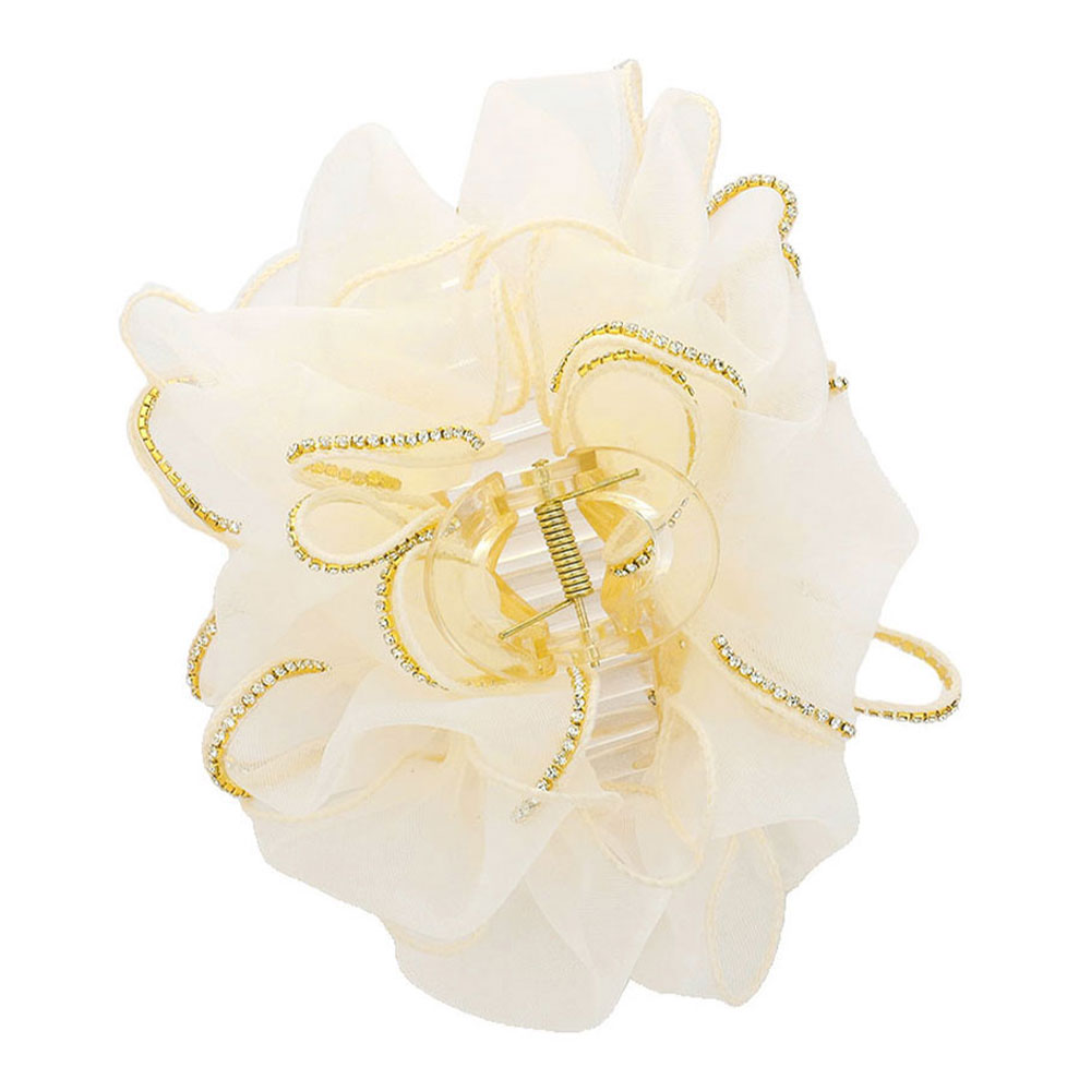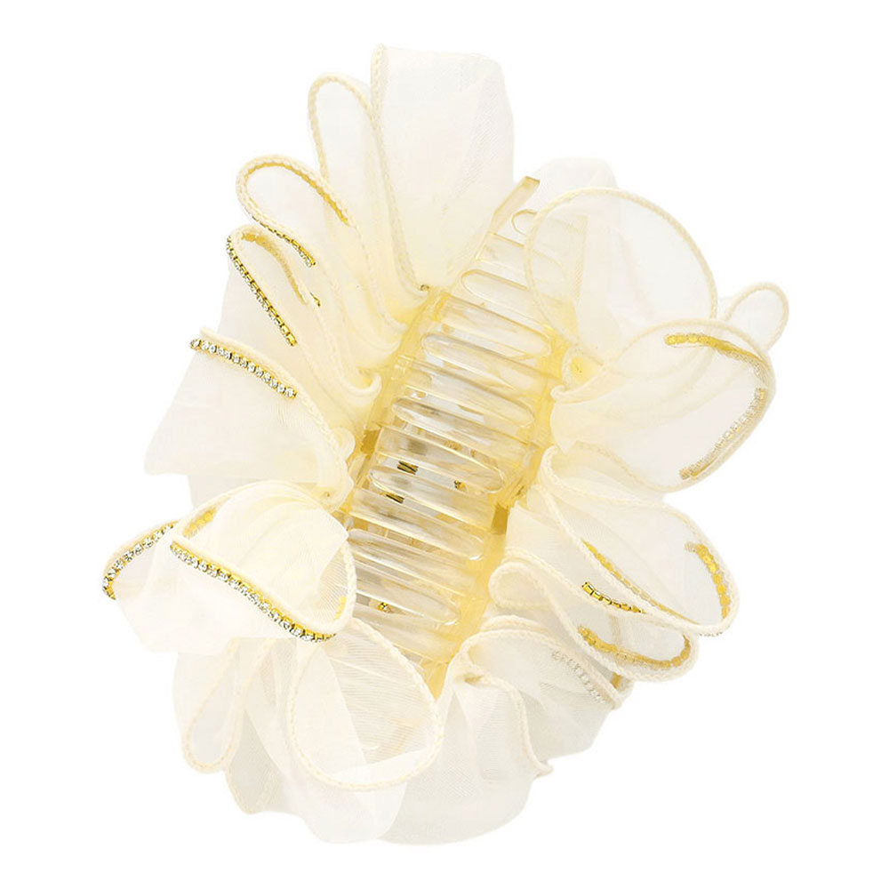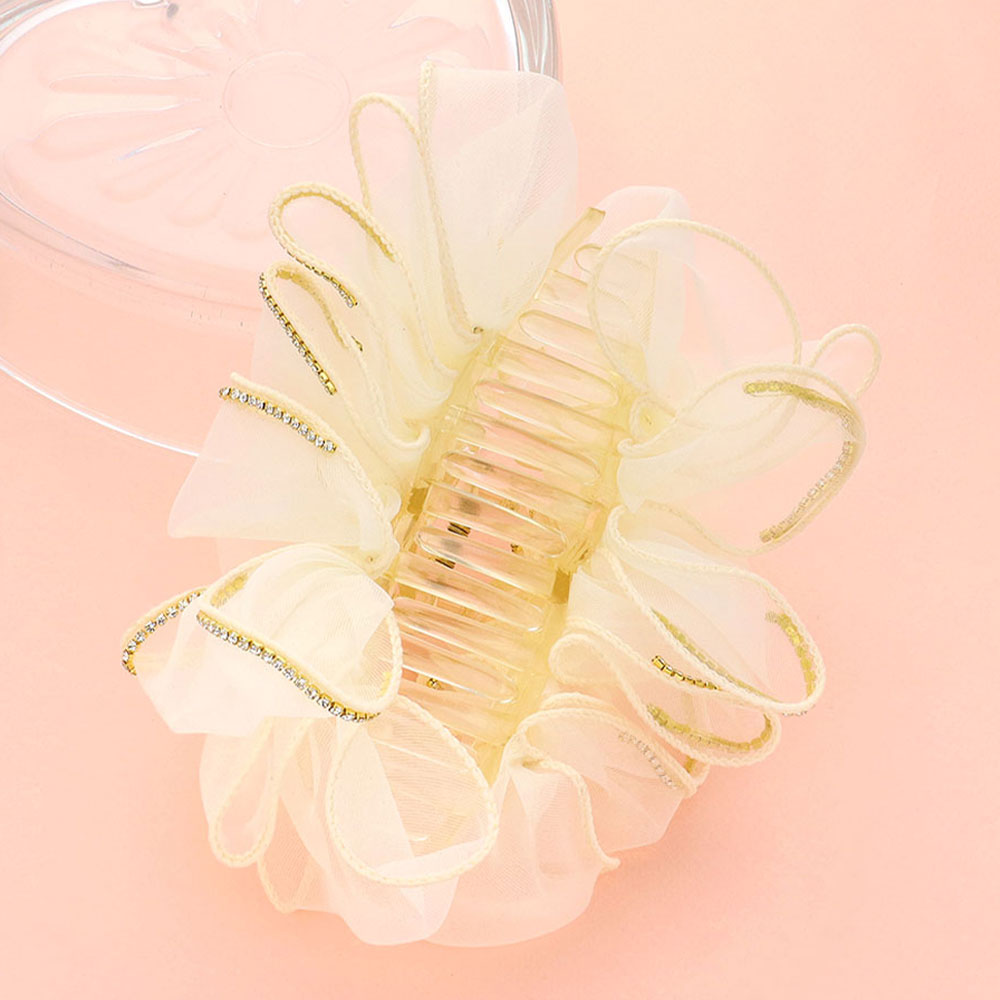 Rhinestone Paved Rim Edge Bow Hair Claw Clip
