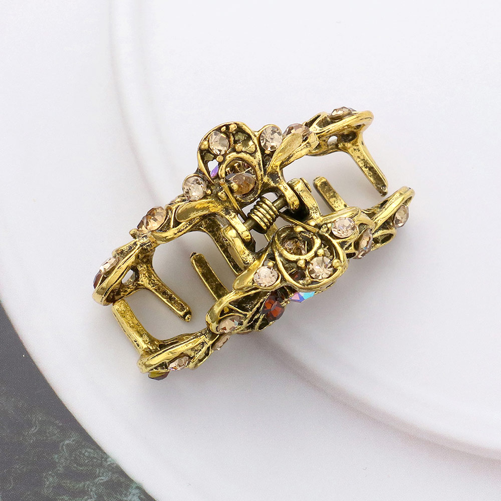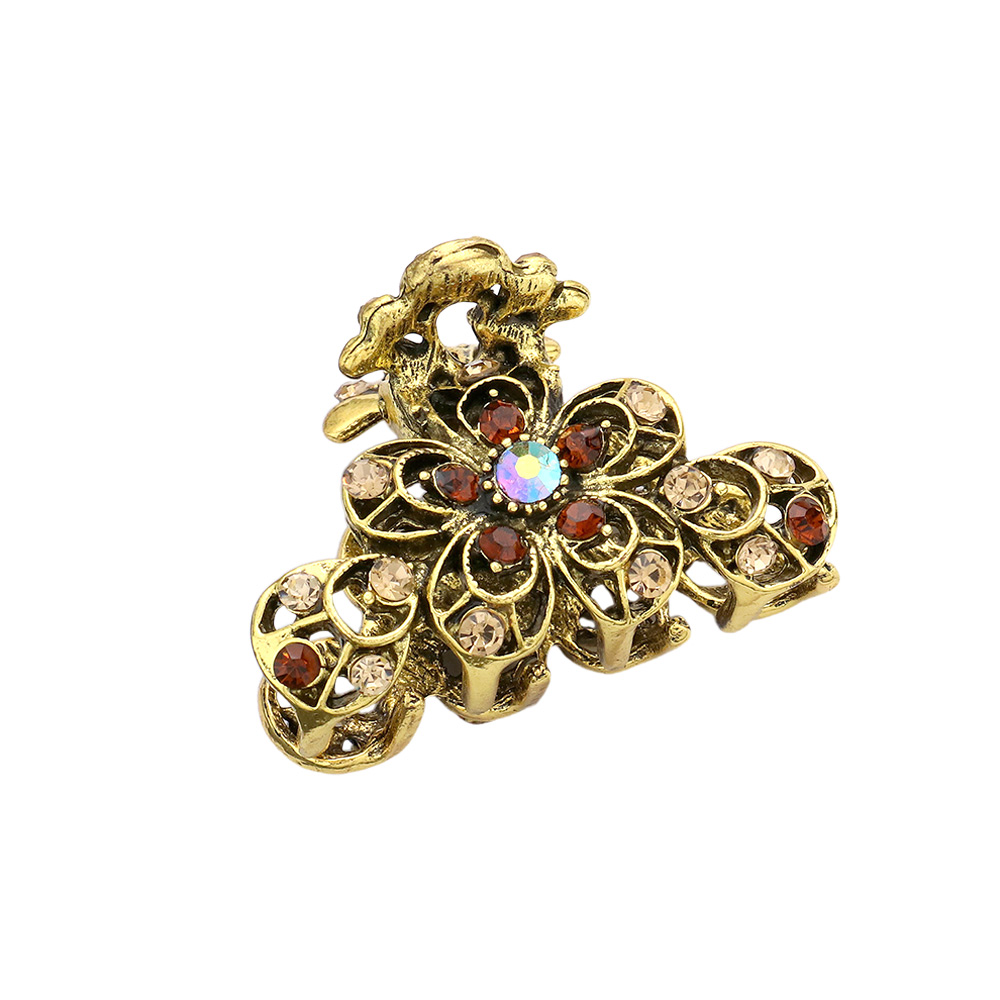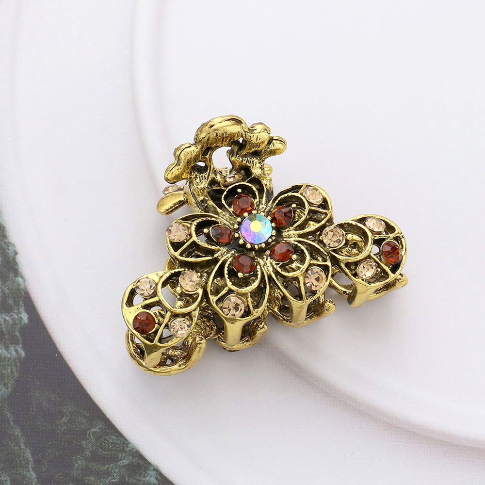 Stone Embellished Flower Accented Hair Claw Clip
