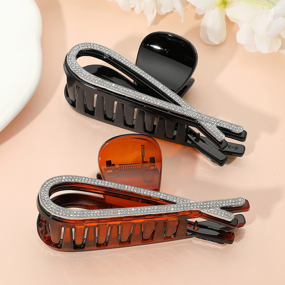 Stone Paved Open Crisscross Frame Hair Claw Clip