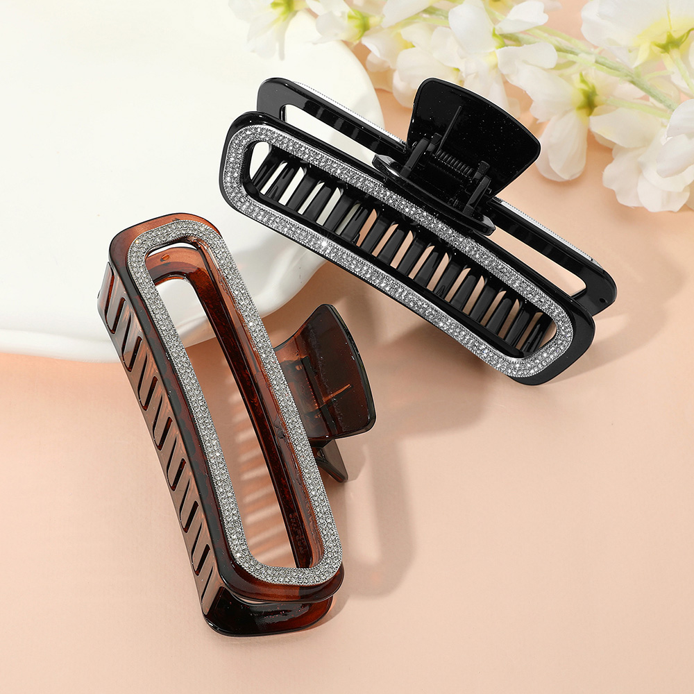 Stone Paved Rectangle Open Frame Hair Claw Clip