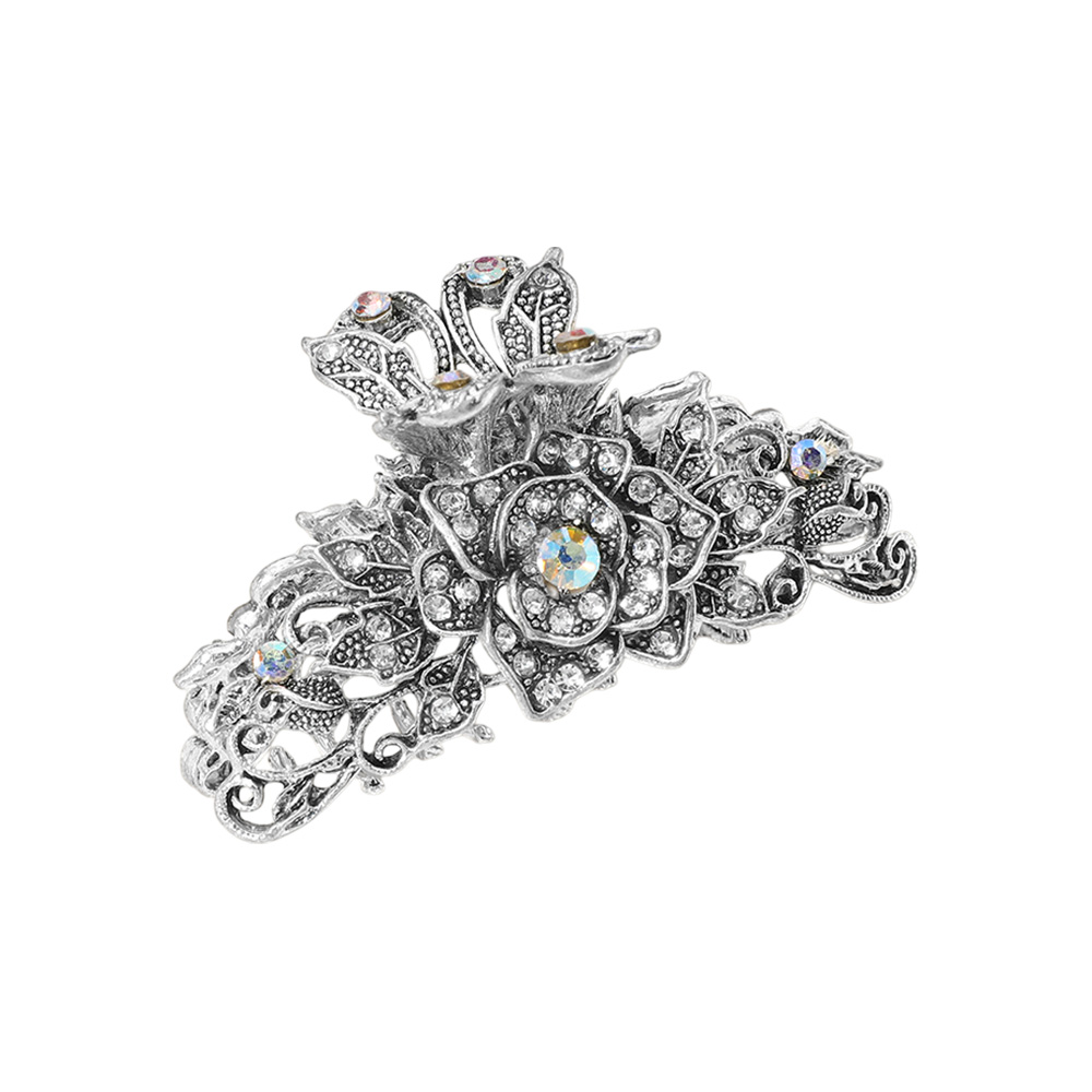 CZ Stone Paved Floral Leaf Vine Hair Comb