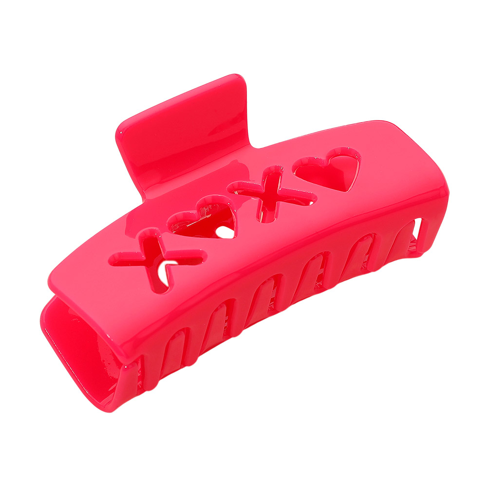 Details • Size : 4" X 2" • Stylish hair claw clip featuring playful XO and heart cutout details for a trendy, everyday look. Designed to secure hair comfortably while adding a fun, modern accent. Perfect for casual styling, gifting, or boutique collections seeking eye-catching hair accessories.