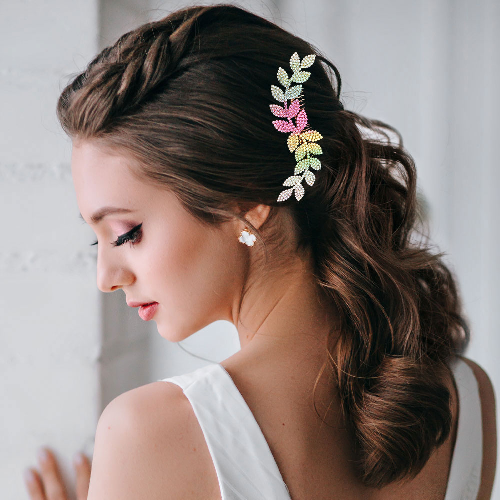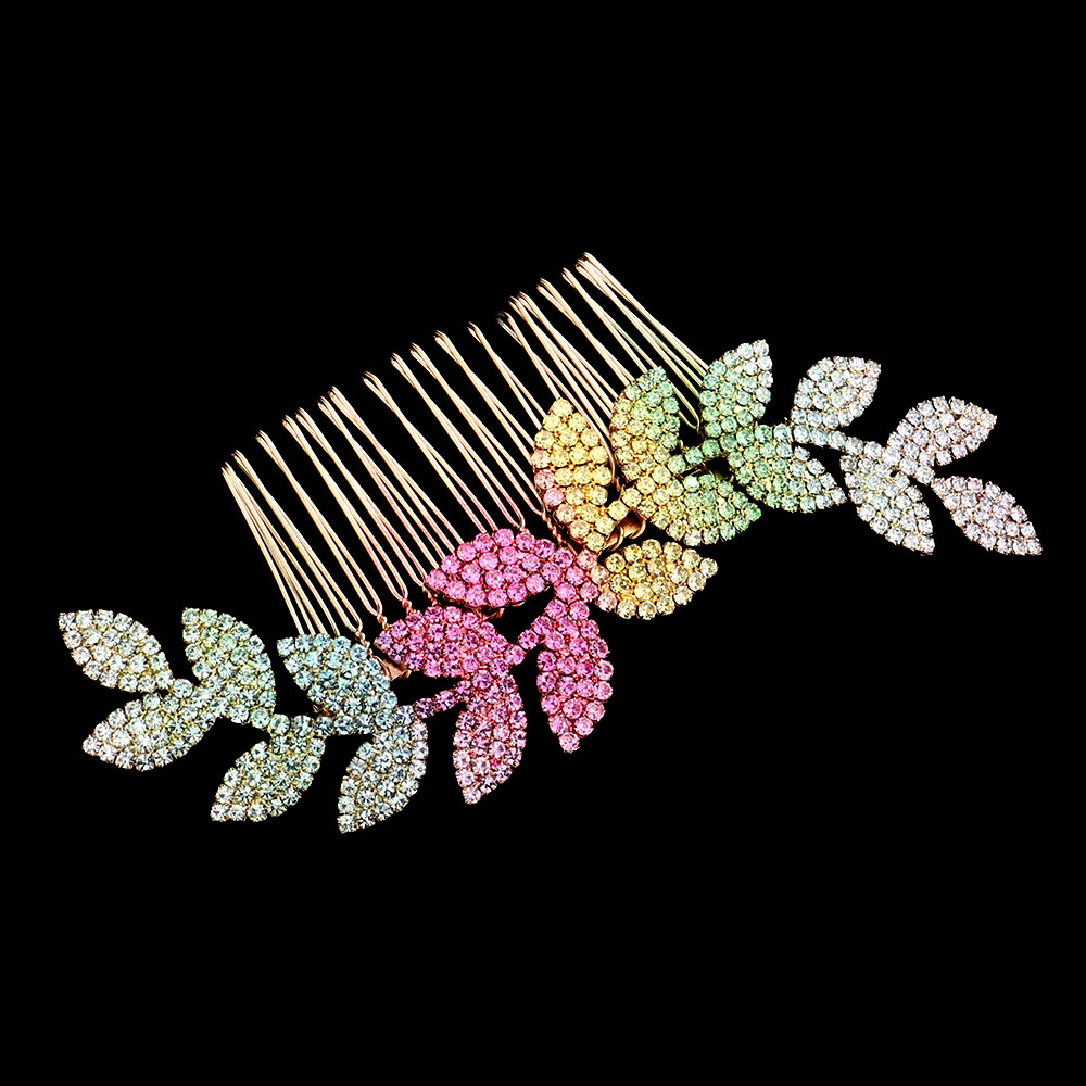 Colorful Rhinestone Leaf Hair Comb
