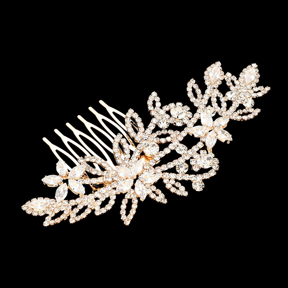 Details • Size : 4.25" X 1.75" • This cz crystal floral bridal hair comb adds radiant elegance to any hairstyle. Designed with sparkling leaf and flower motifs, it brings a luxurious touch perfect for weddings, formal events, or special occasions. A stunning accessory that enhances your look with timeless beauty and grace. • CZ Cubic Zirconia • Lead and Nickel Compliant