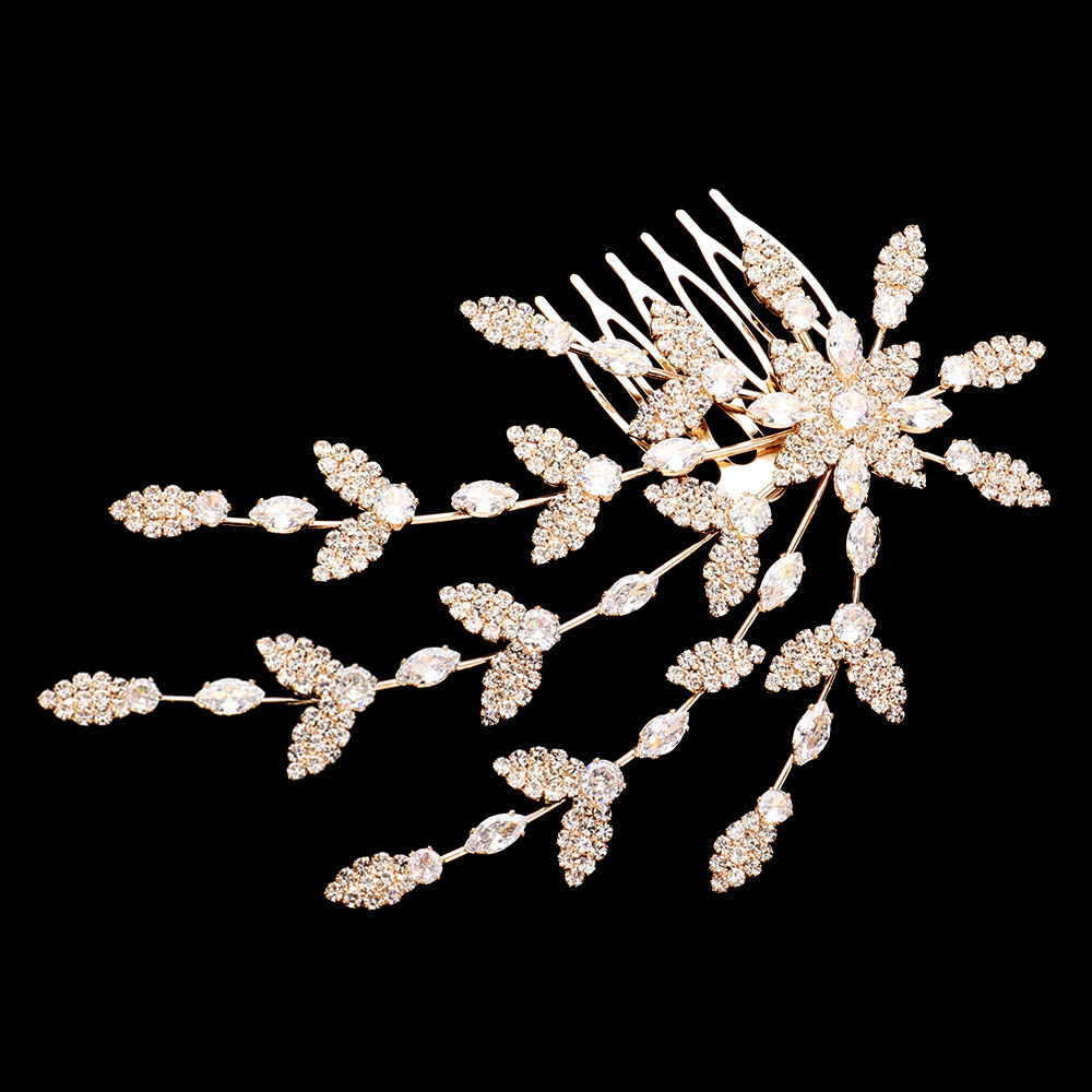 CZ Marquise Stone Accented Rhinestone Paved Flower Pointed Hair Comb