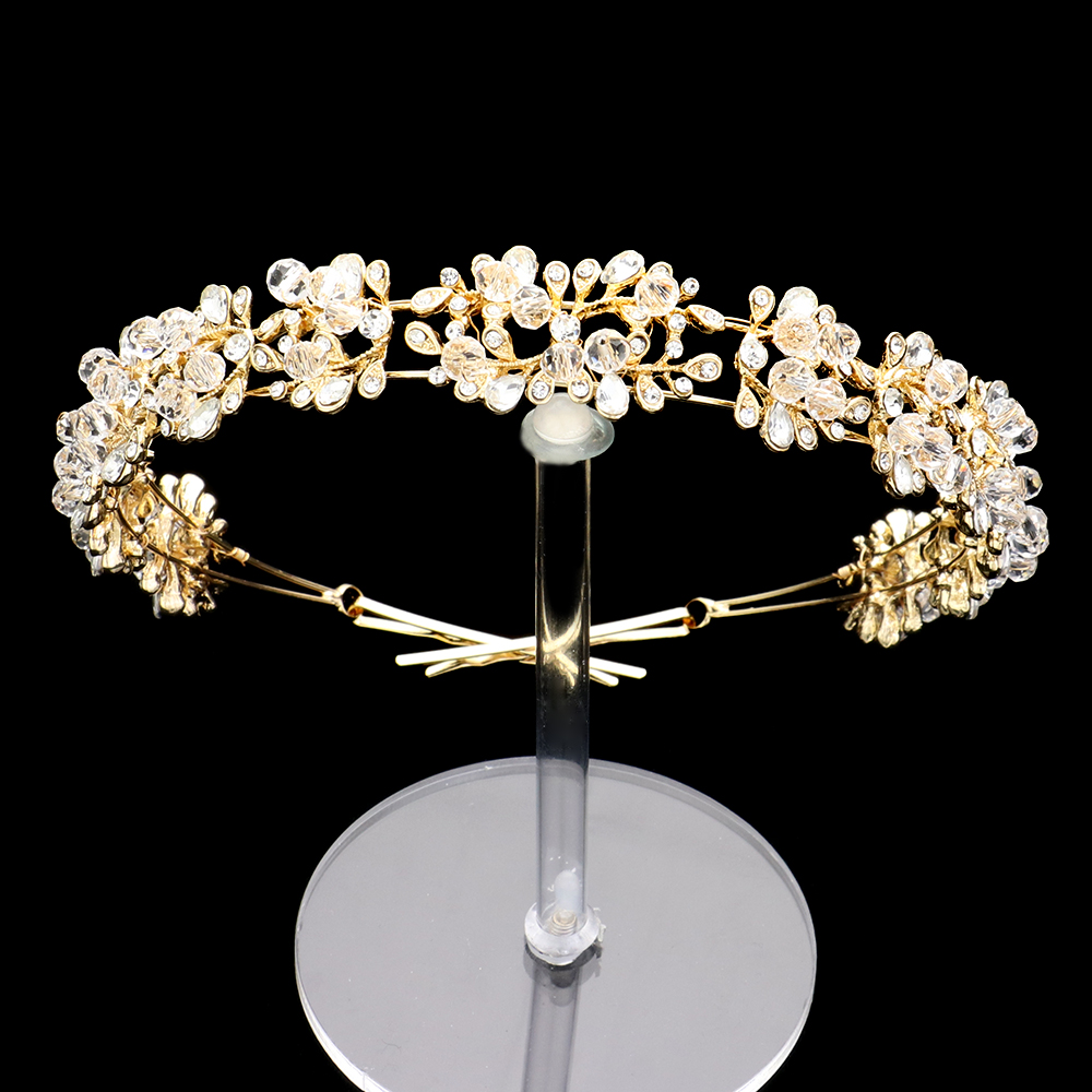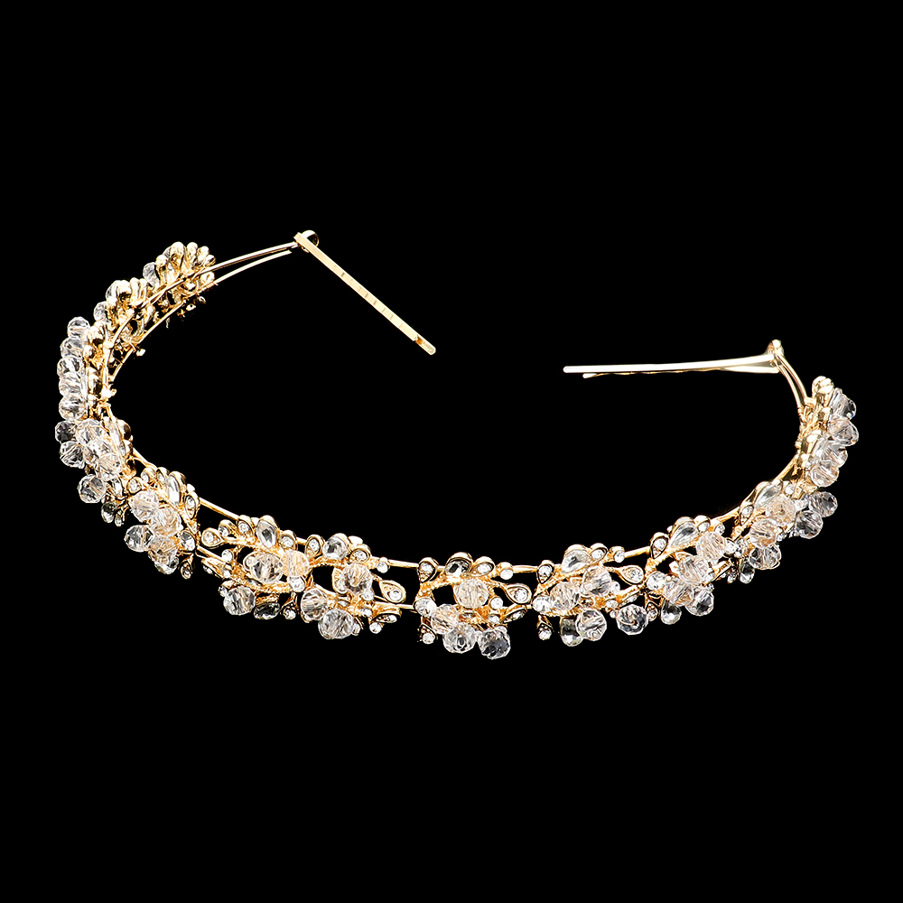 Faceted Beads Pointed Stone Paved Leaf Cluster Wrap Headpiece