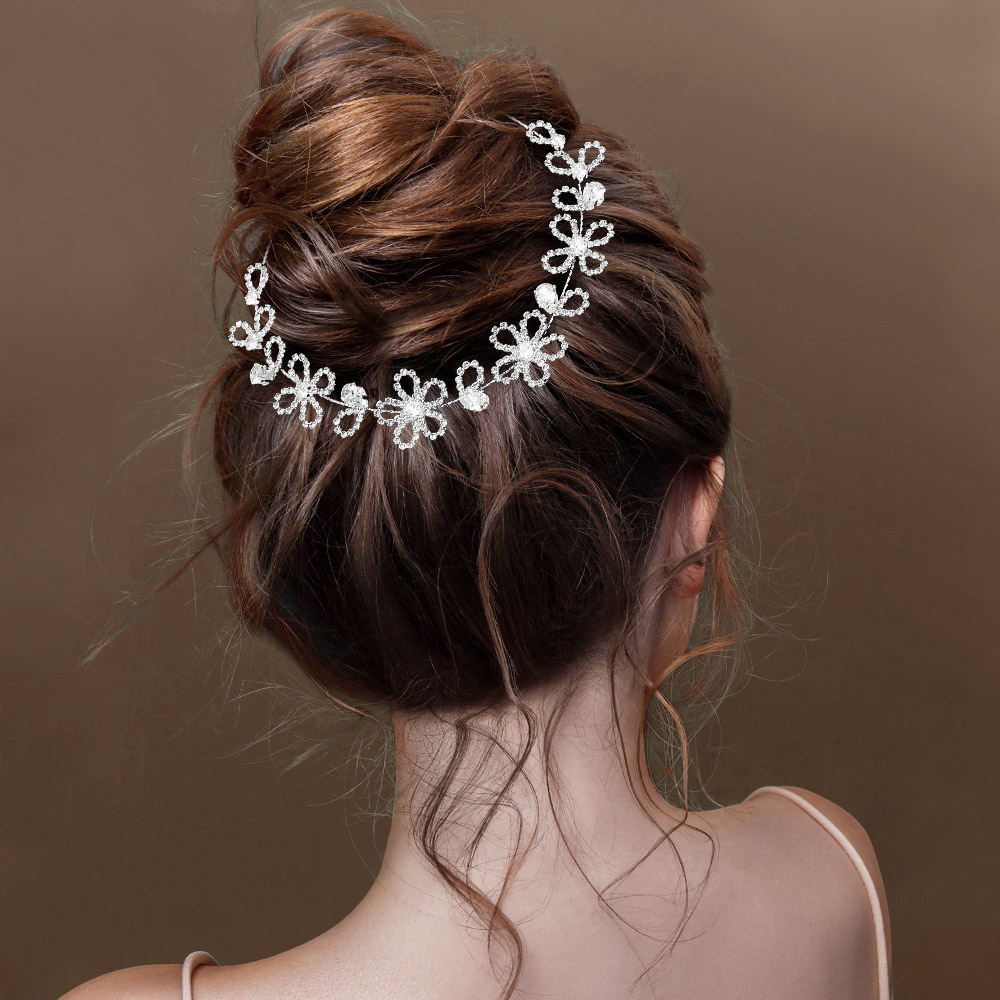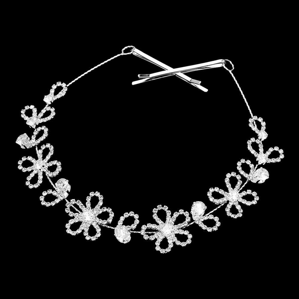 Details • Size : 11" x 0.9" • A Pair Bobbi Pin Included • Delicate floral hair vine with sparkling crystal accents, perfect for weddings and special events. Designed to elegantly wrap around bridal updos, adding a romantic and graceful touch to any hairstyle. • CZ Cubic Zirconia • Lead and Nickel Compliant