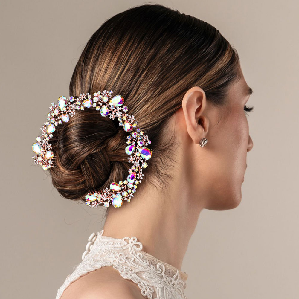 Details • Size : 1.25" X 12" • A Pair Bobbi Pin Included • Sophisticated floral crystal hair wrap designed to encircle elegant buns and updos. Ideal for bridal or formal looks, it delivers a refined sparkle and secure hold for special events and timeless style.