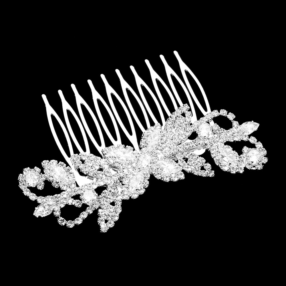 • Graceful and refined, this leaf-inspired hair comb features shimmering cubic zirconia accents in a delicate design. Ideal for weddings or formal occasions, it adds a sophisticated sparkle to buns or updos with elegant flair and timeless beauty.