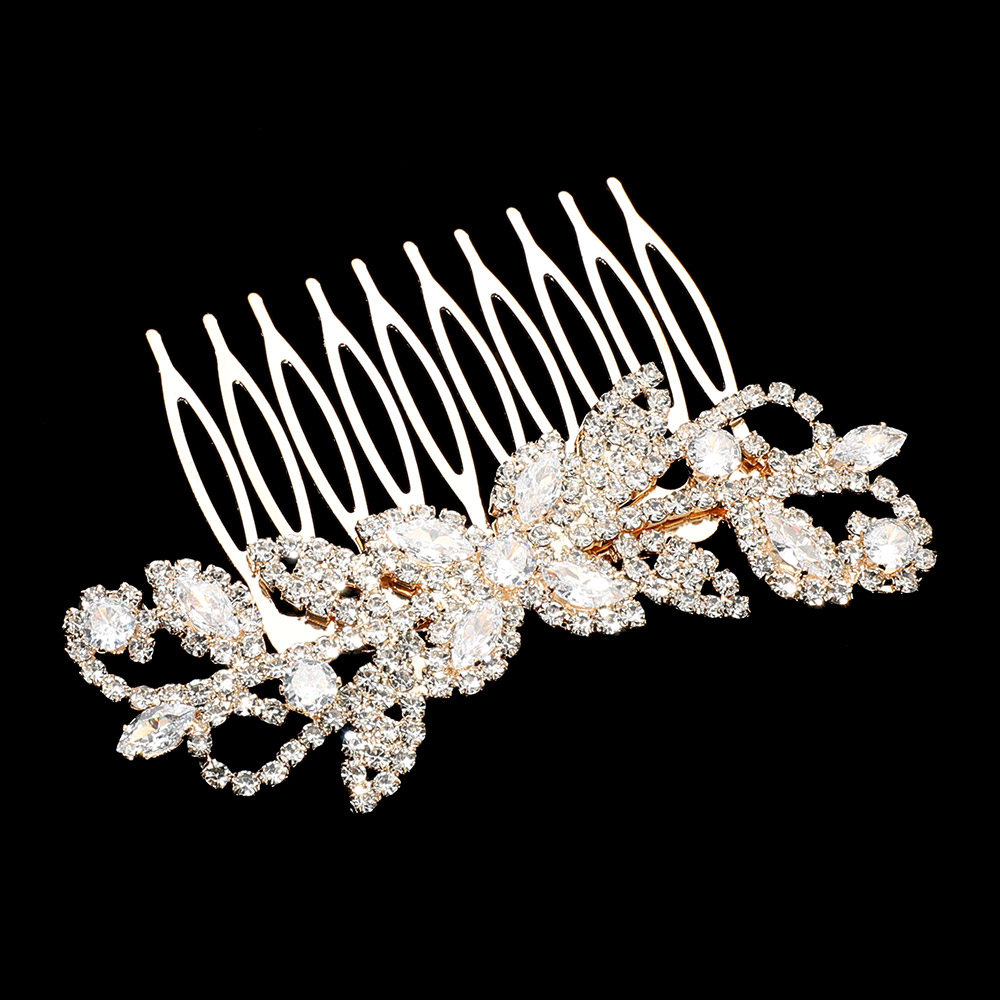 Details • Size : 3.25" X 1.25" • Graceful and refined, this leaf-inspired hair comb features shimmering cubic zirconia accents in a delicate design. Ideal for weddings or formal occasions, it adds a sophisticated sparkle to buns or updos with elegant flair and timeless beauty. • Lead and Nickel Compliant • CZ Cubic Zirconia