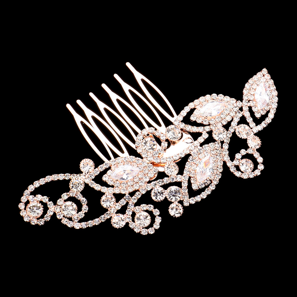 Marquise CZ Stone Accented Leaf Vine Hair Comb
